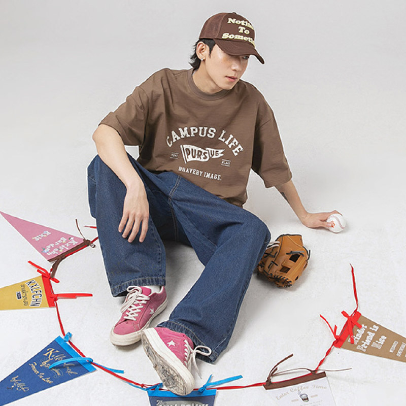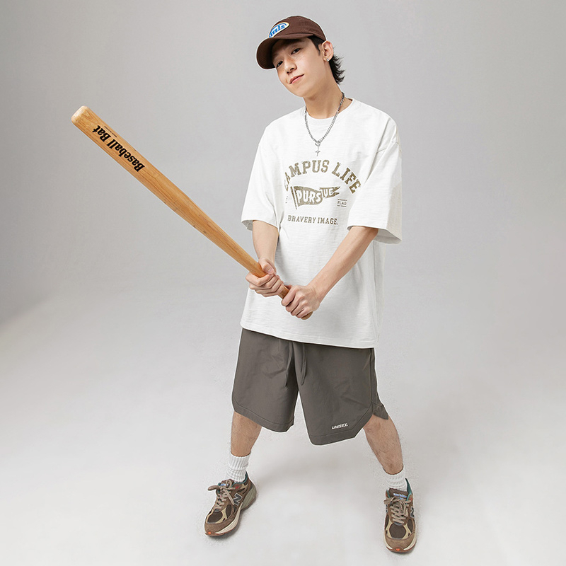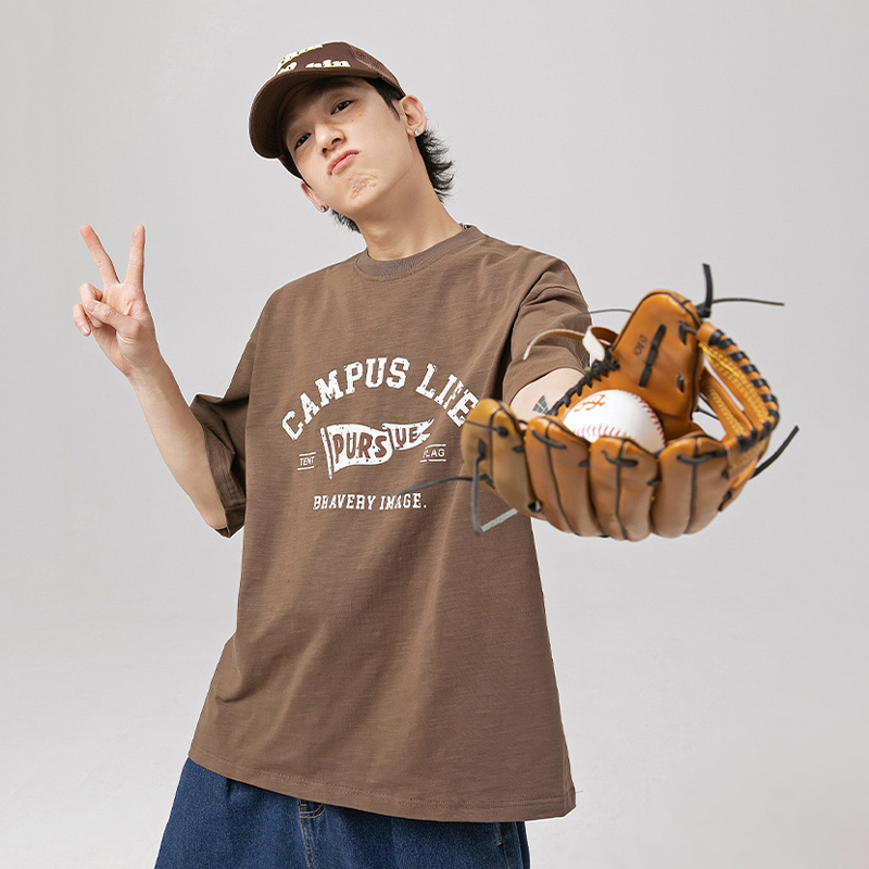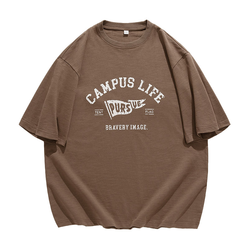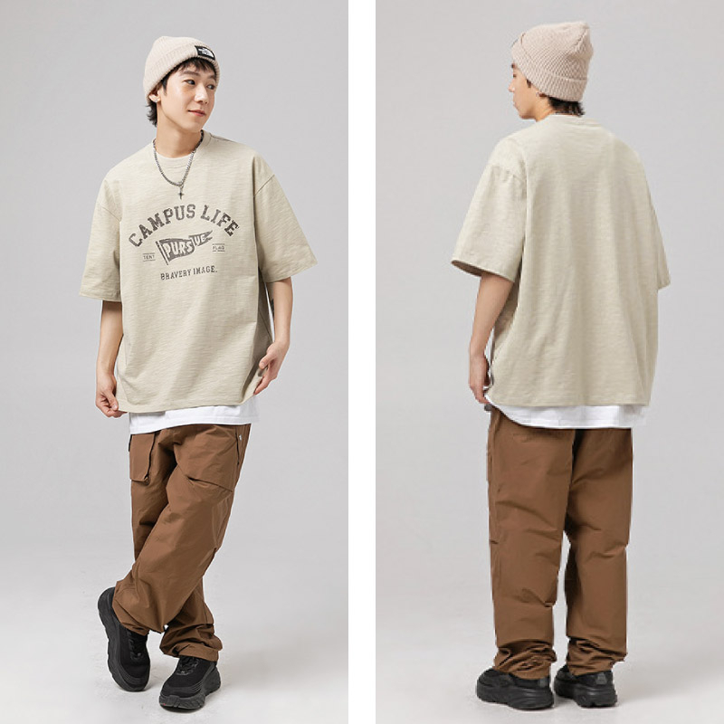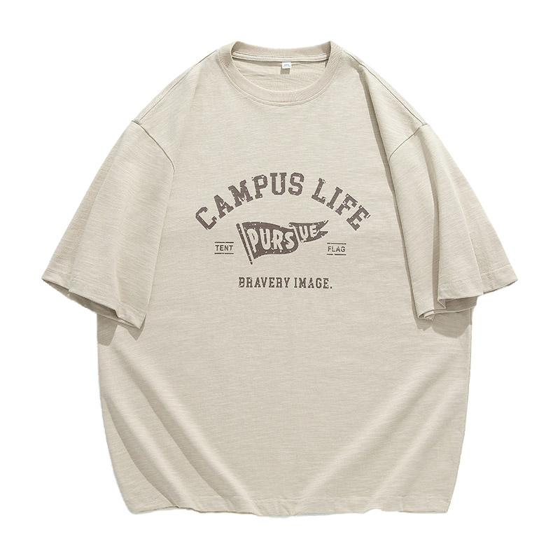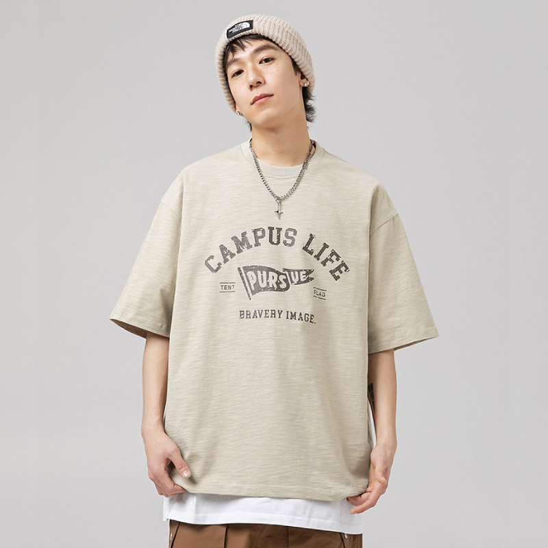 AOYAMA CAMPUS LIFE 仿舊剝落印花設計 純棉短T【AK1839】五分袖 寬鬆短袖 男女不拘 露營 青山