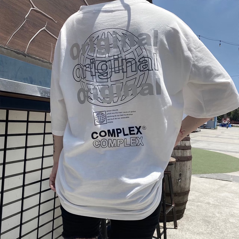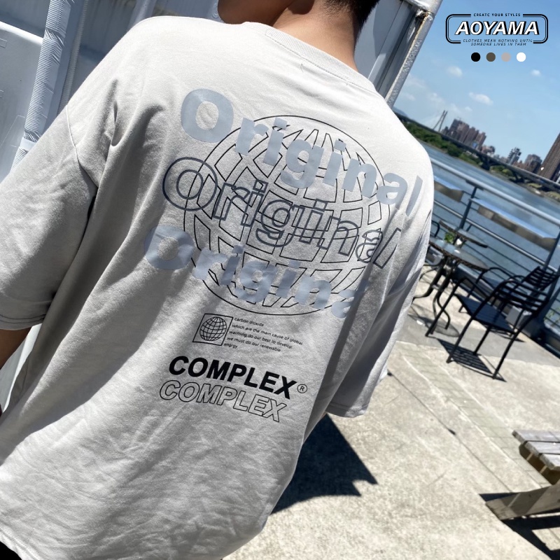 AOYAMA 韓國 Original 幻影反光 地球 五分袖落肩短T【PS09016】寬鬆短袖 韓國 青山 情侶 落肩