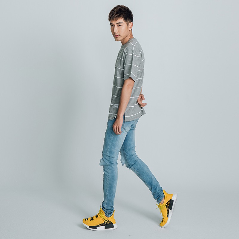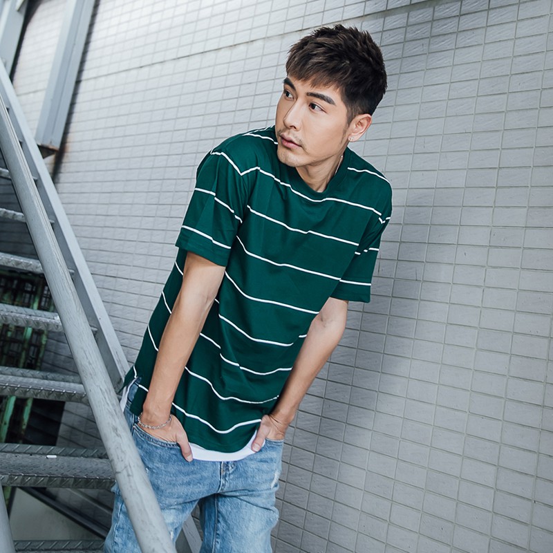 AOYAMA 寬鬆微落肩單線條紋落肩短T【H0002】開衩 落肩 青山