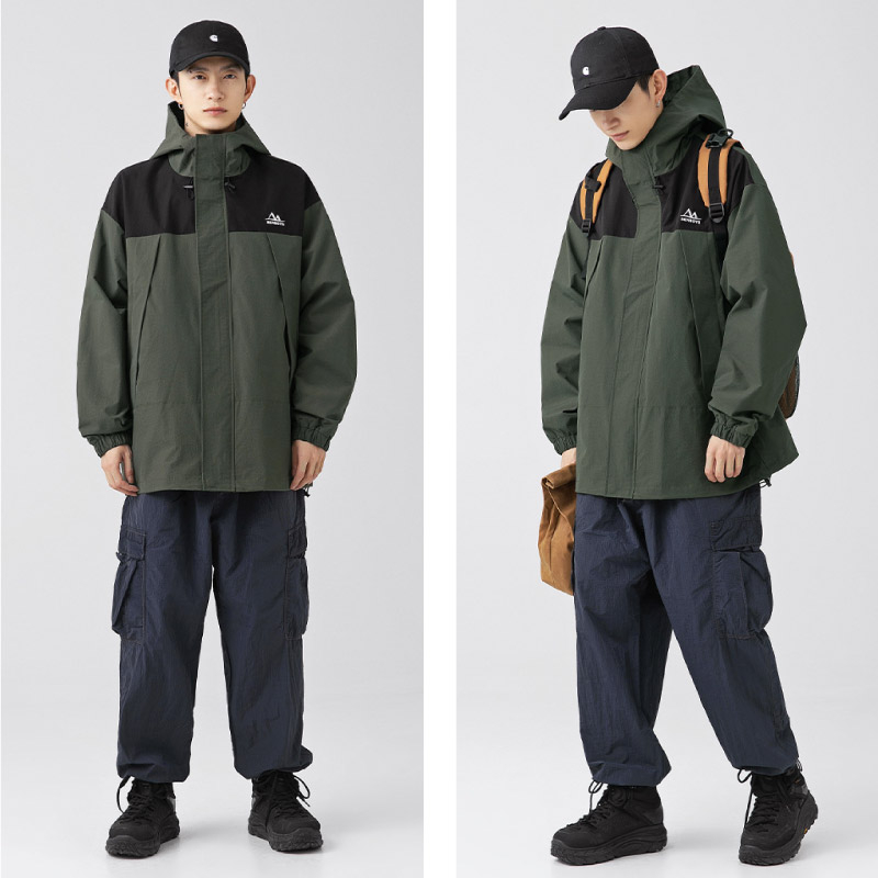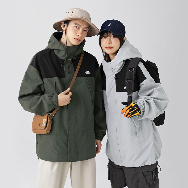 AOYAMA 山系 拼接雙配色 戶外OUTDOOR 立領連帽 機能外套【AK3645】男女不拘 寬鬆 衝鋒外套 青山