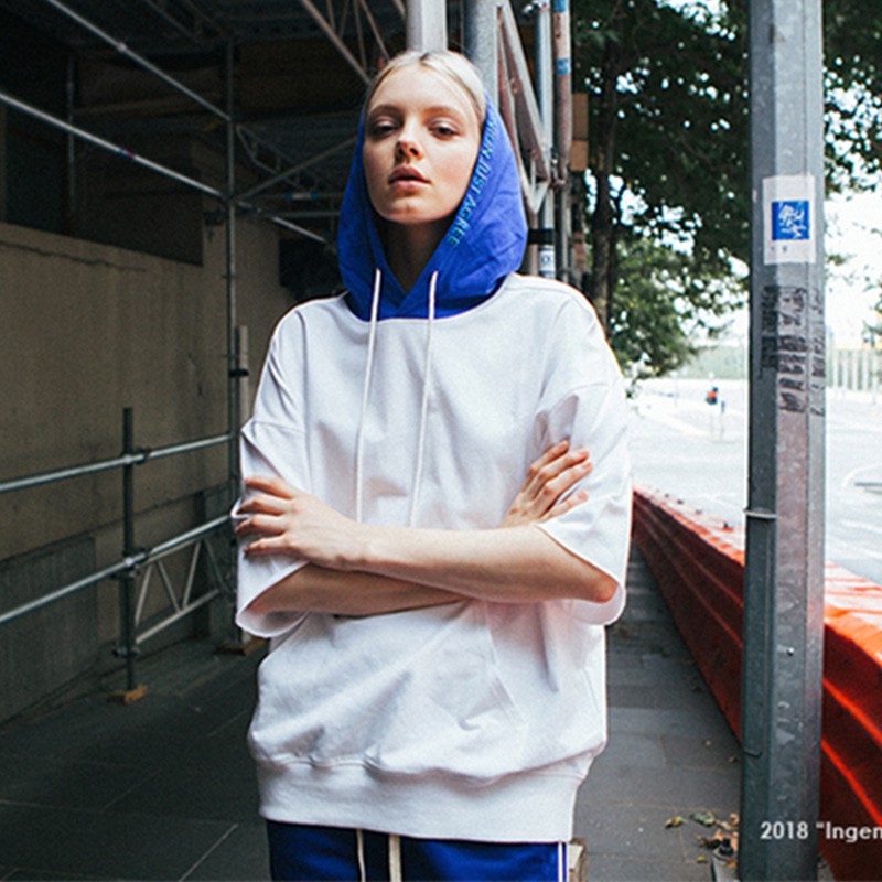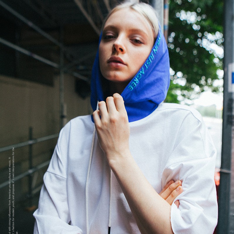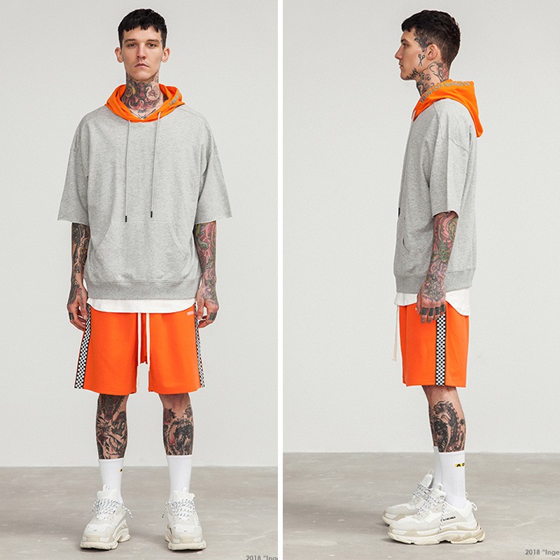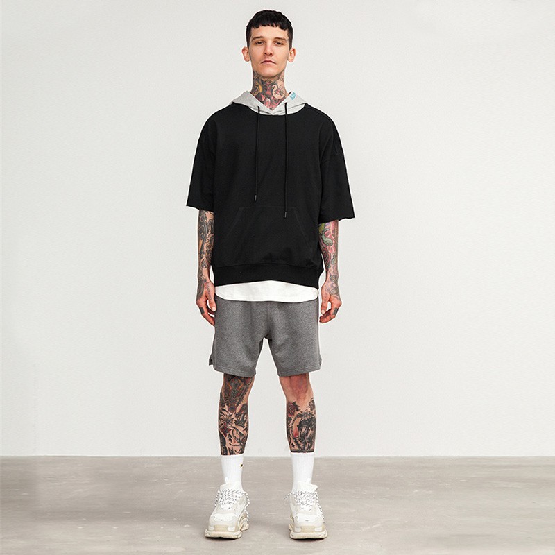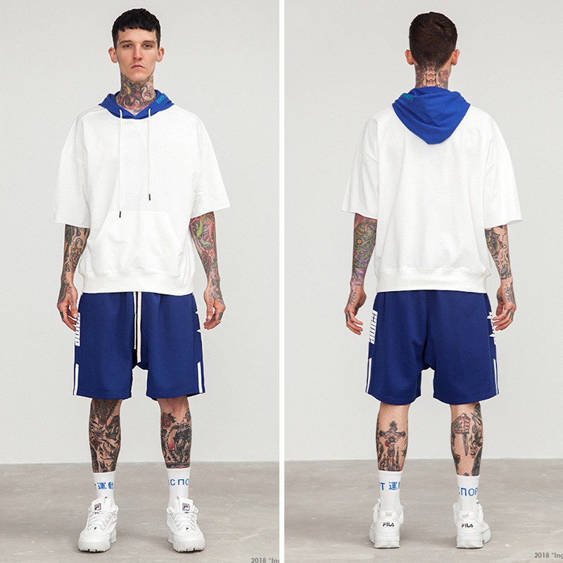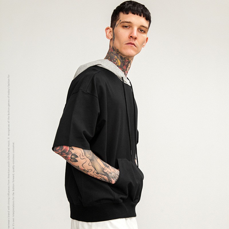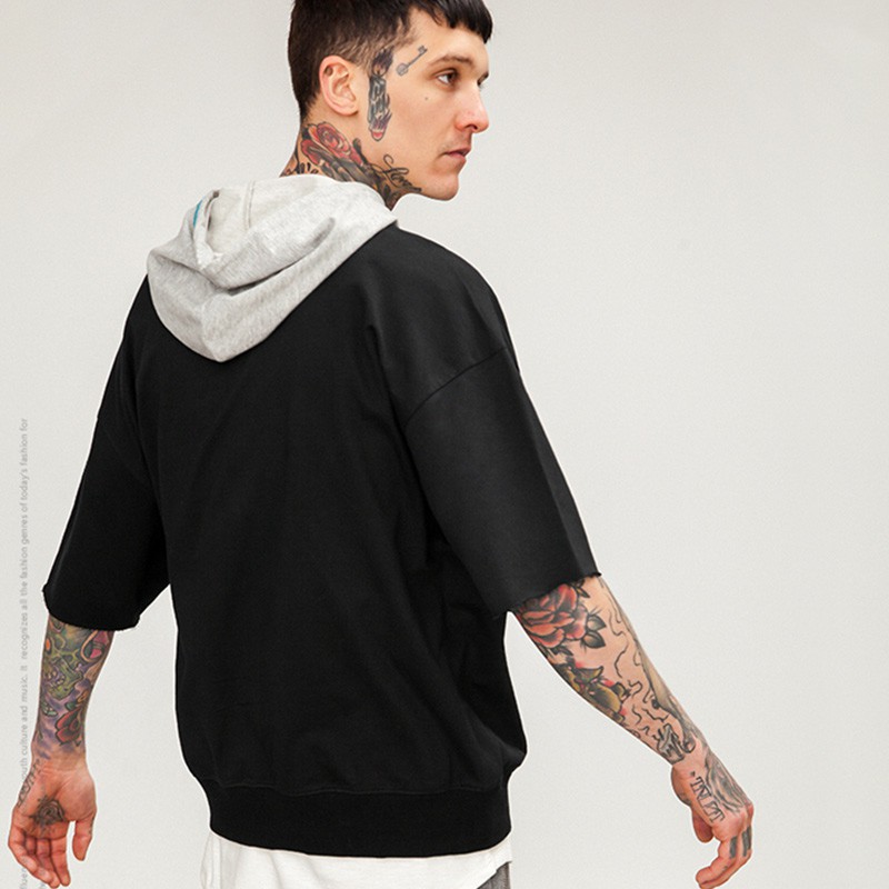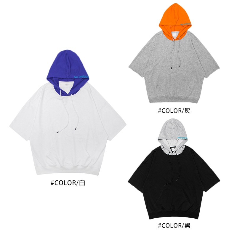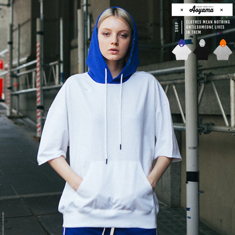 AOYAMA 歐美街頭oversize寬鬆落肩撞色短袖帽T【B6817】情侶 寬鬆短T 青山
