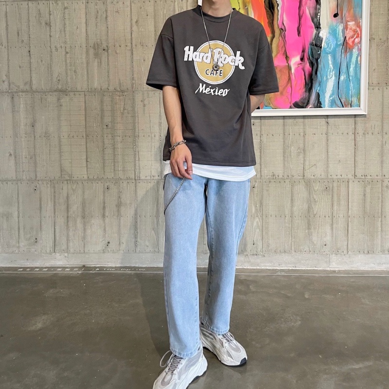 AOYAMA 高磅太空棉Hard Rock配色寬鬆情侶短T【TH36299】寬鬆短袖 韓國 青山 情侶 落肩