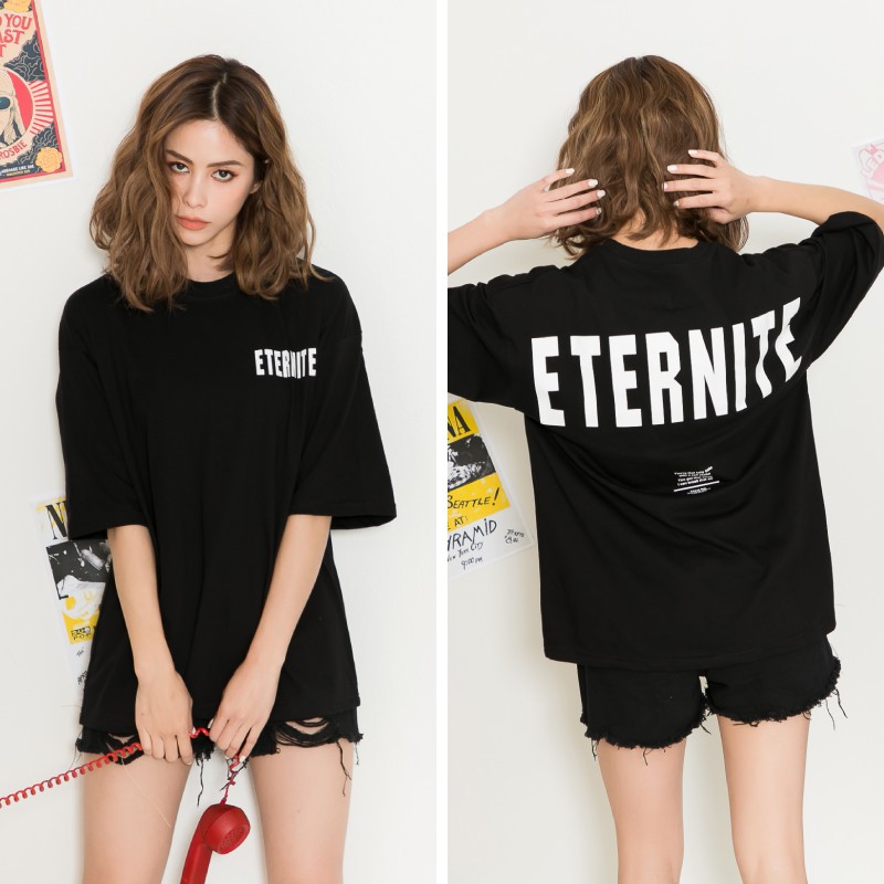 AOYAMA 街頭ETERNITF文字印花落肩寬T【A6818】寬鬆短袖 情侶 oversize 五分袖 青山