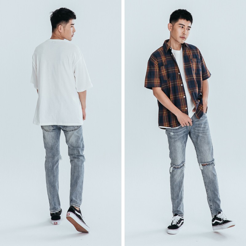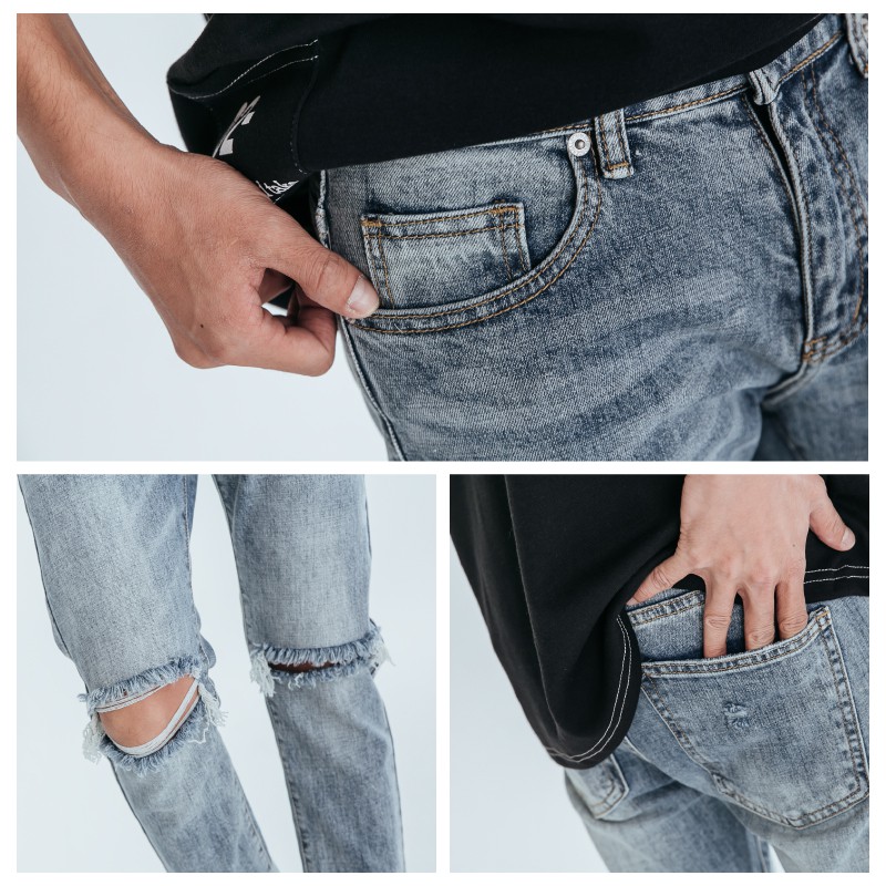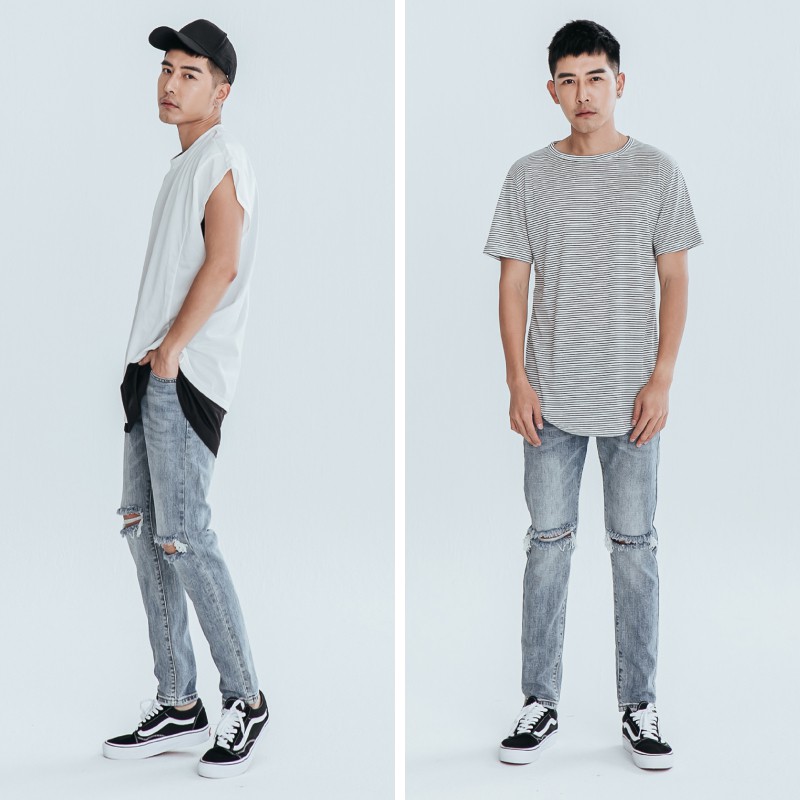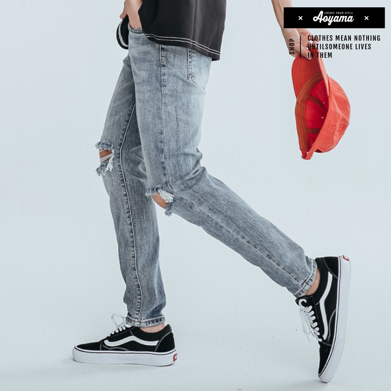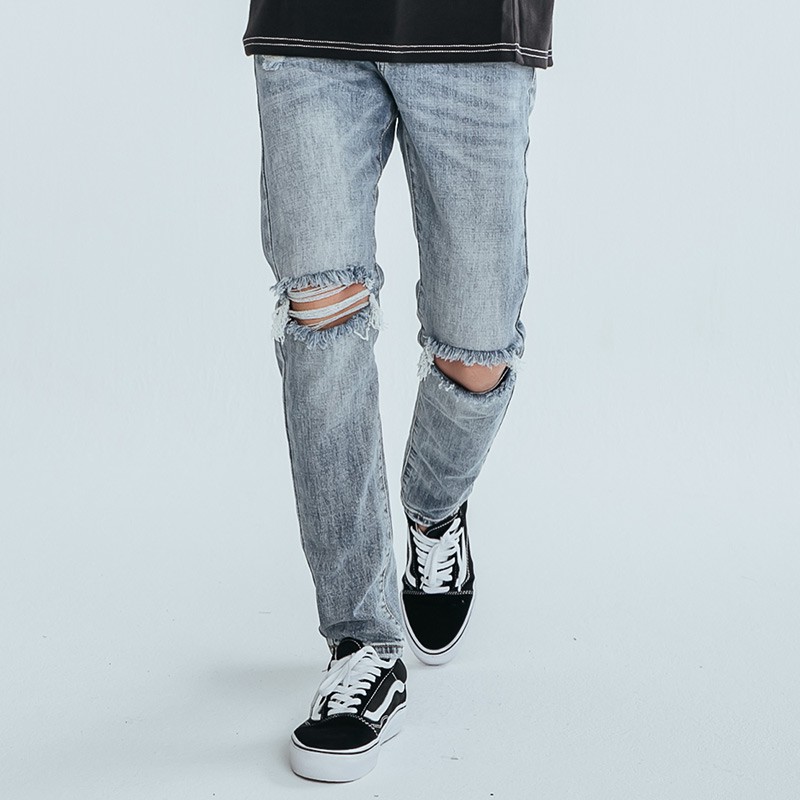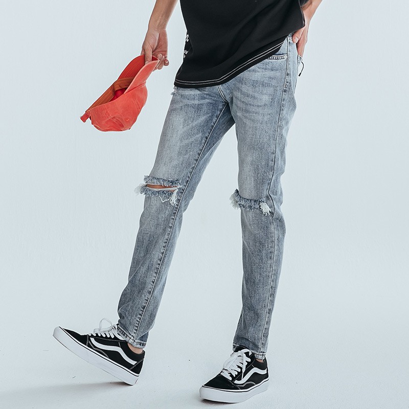 AOYAMA 潮流膝破貓爪刷色破壞牛仔褲【ERC2073】休閒褲 青山