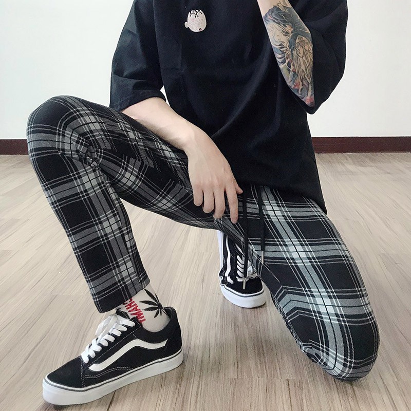 AOYAMA 韓國TRAPBAE彈力格紋休閒長褲【K0019】休閒褲 潮流 格子褲 哈倫褲 青山