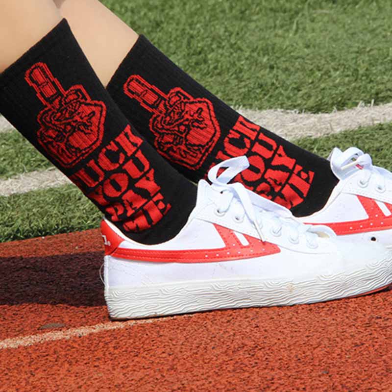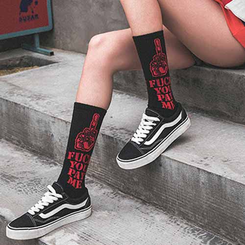 AOYAMA 街頭 個性 中筒 中指 FUCK YOU PAY ME 男女 長襪 襪子【KP807】 青山