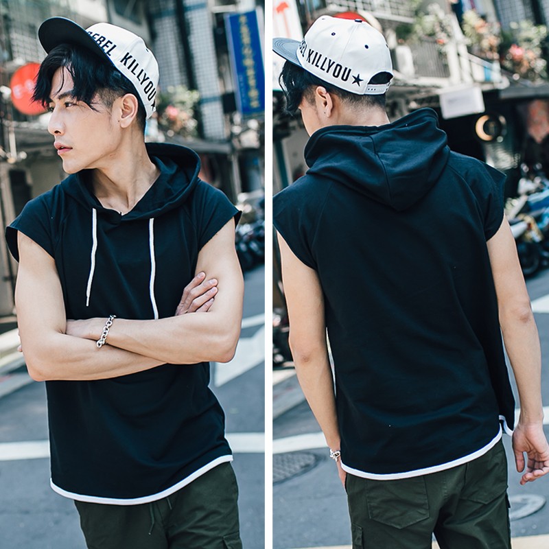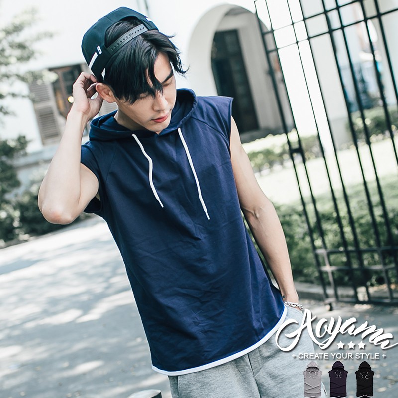 AOYAMA 韓系不修邊設計質感連帽背心【A1058】