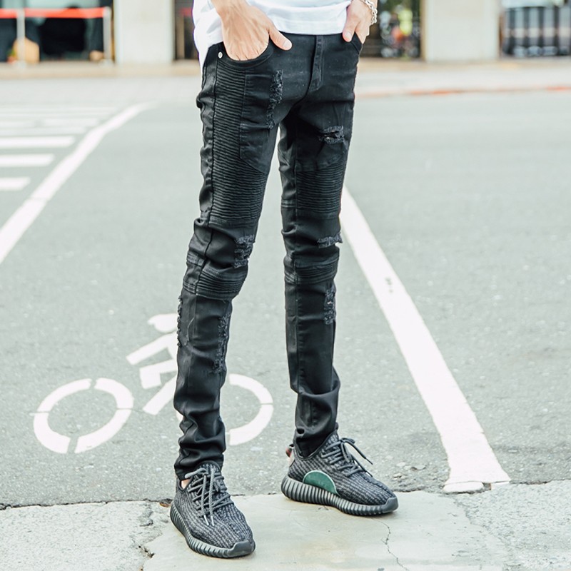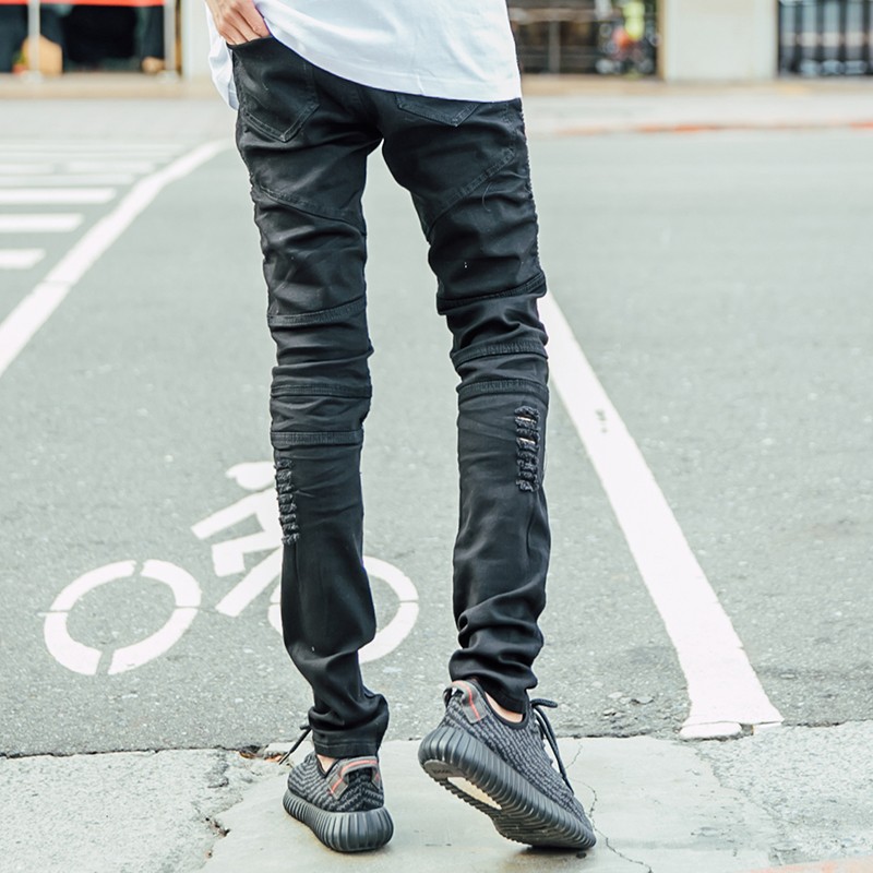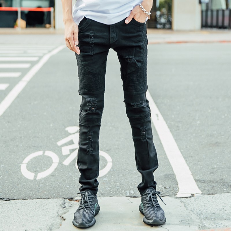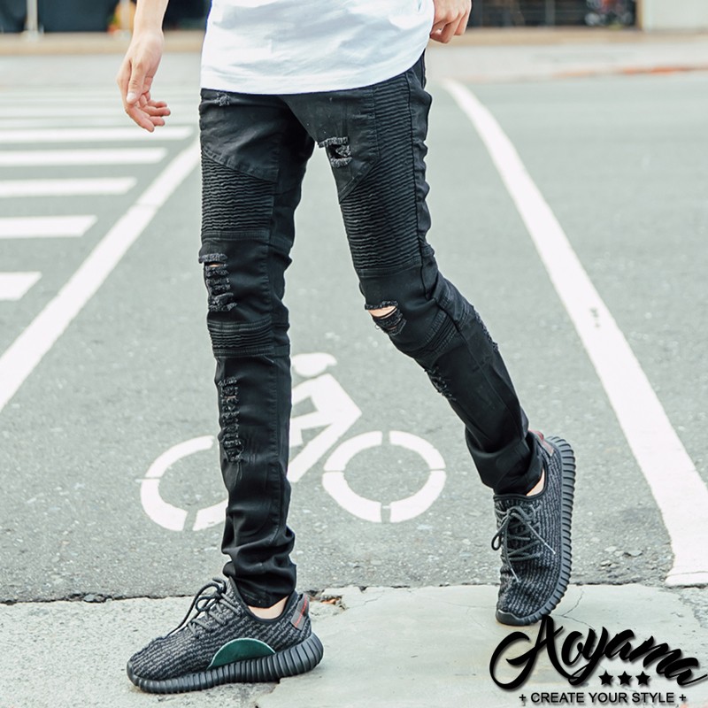 歐美時尚 獨家破壞黑單寧機車褲【K1802】 AOYAMA