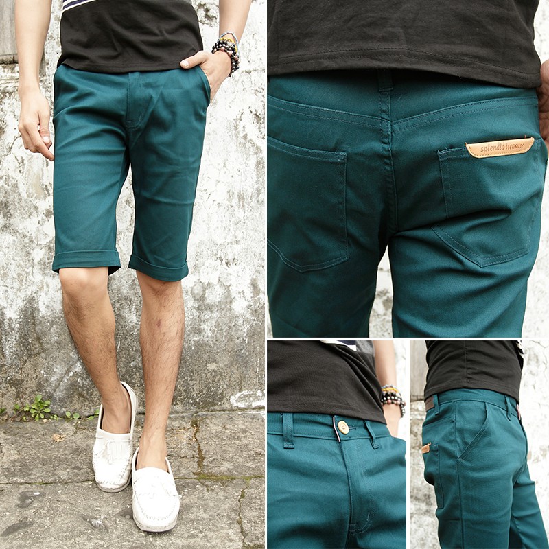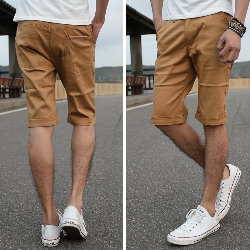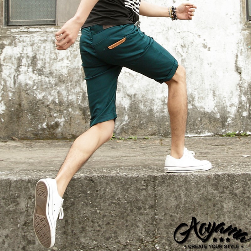 AOYAMA 韓國型男繽紛馬卡龍皮標木扣彈性短褲【A1313】工作褲
