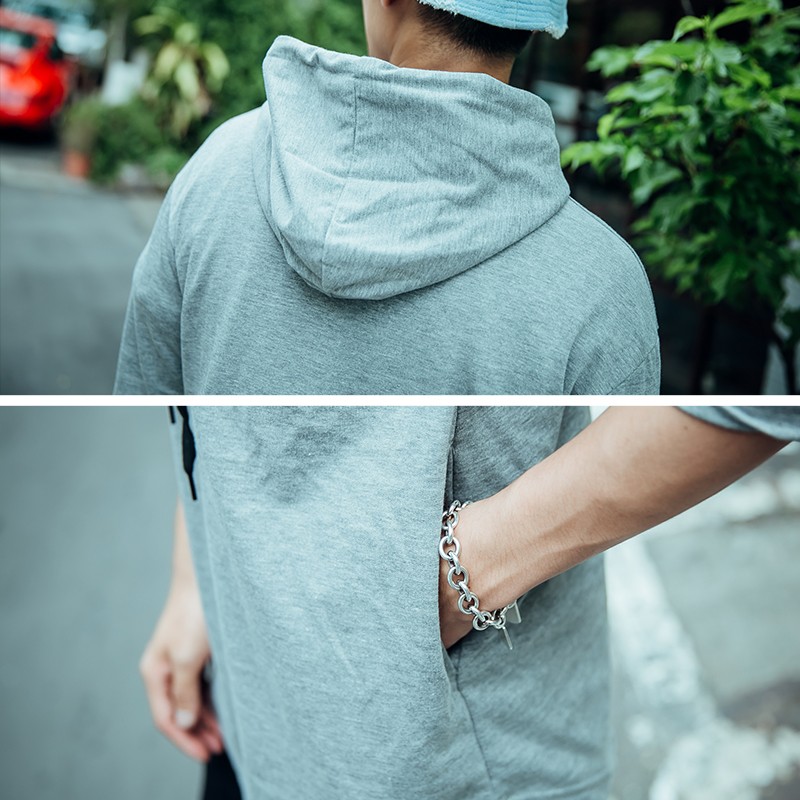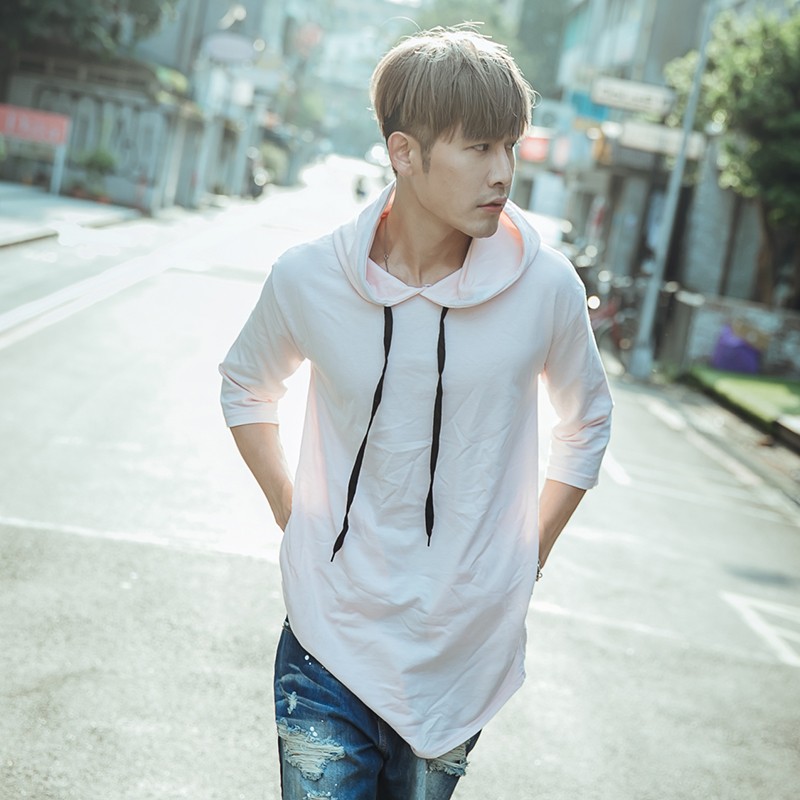 AOYAMA 獨家抽繩連帽圓弧下擺五分袖帽T【T712203】青山