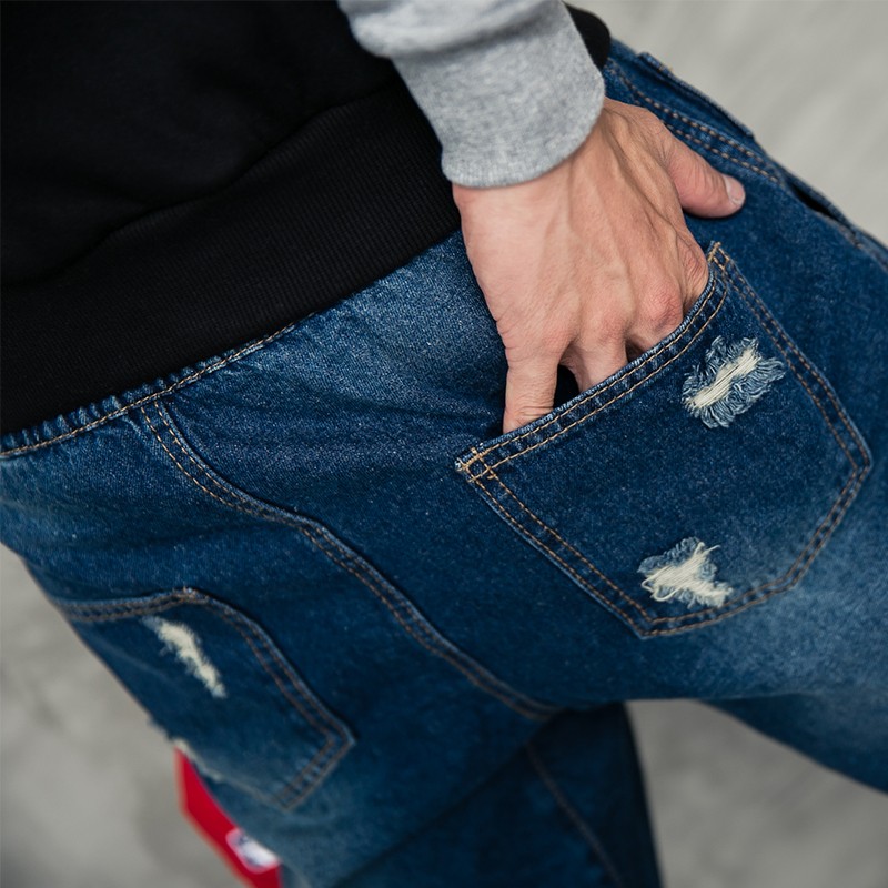 牛仔單寧破壞感Jogging Pants縮口牛仔褲【A1378】工作褲 束口褲 休閒褲 AOYAMA