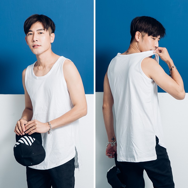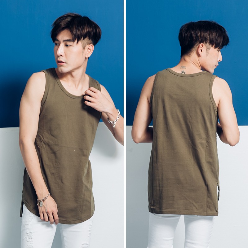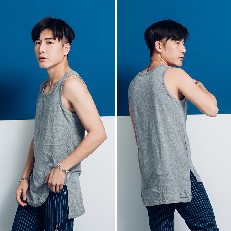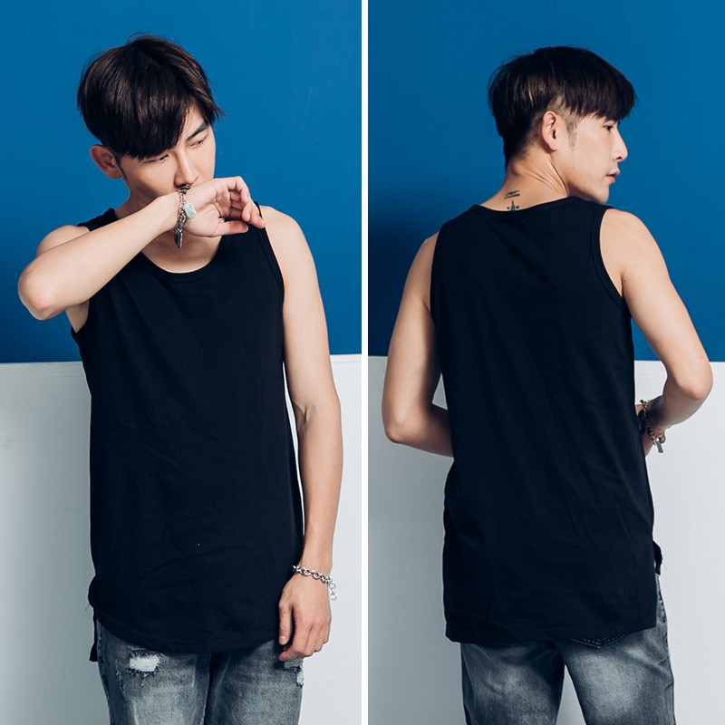 歐美潮流前圓弧後平開衩長版背心【P8850】青山AOYAMA