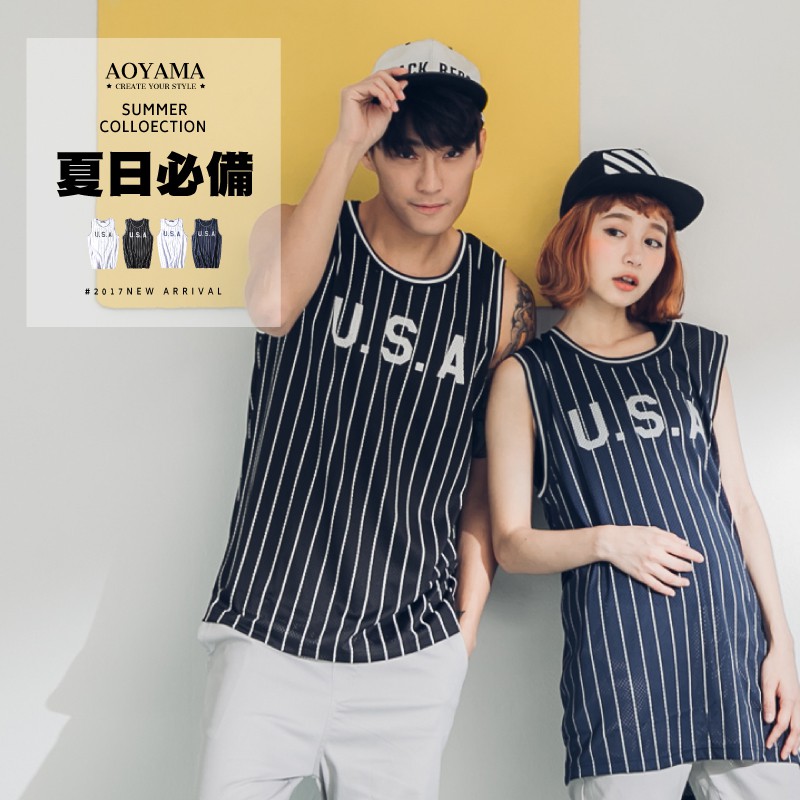 AOYAMA 美式潮流直條紋運動風球衣背心【A88897】情侶款 透氣 吸濕排汗 青山