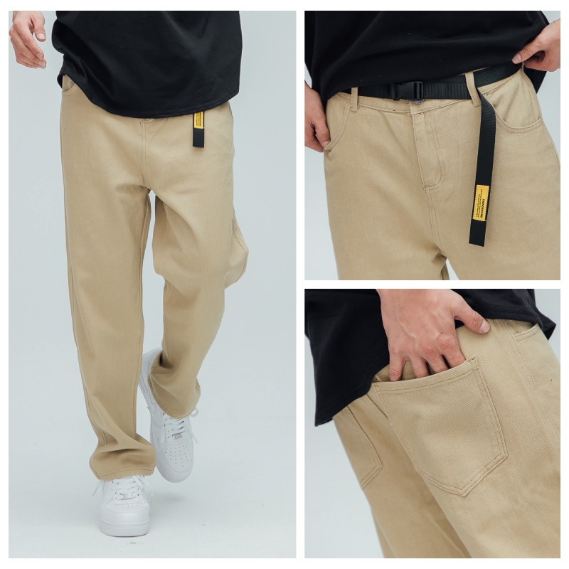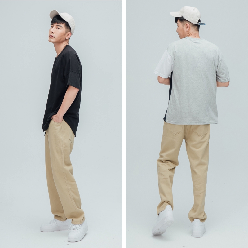 AOYAMA 基礎款百搭素面寬鬆工作褲(付皮帶)【C201】寬褲 休閒長褲 舒適 長褲 青山 工作褲