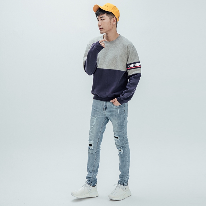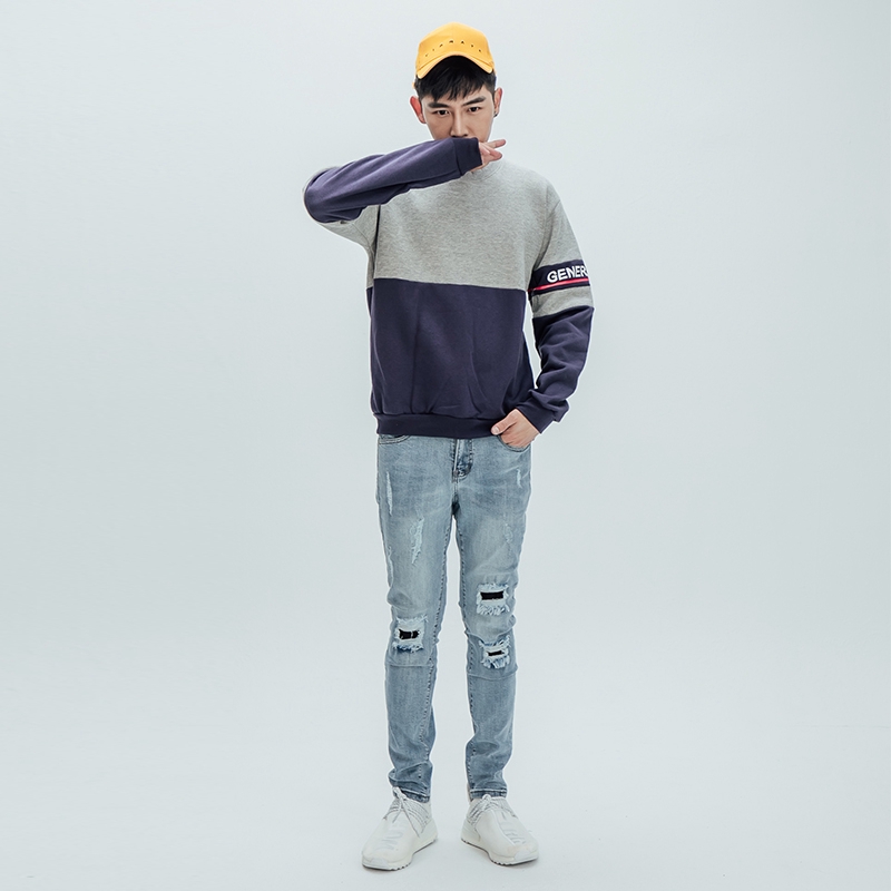 AOYAMA 層次感色塊拼接刷毛大學T【J5571】長T 帽T 拼接 保暖 刷毛 舒適 親膚 青山