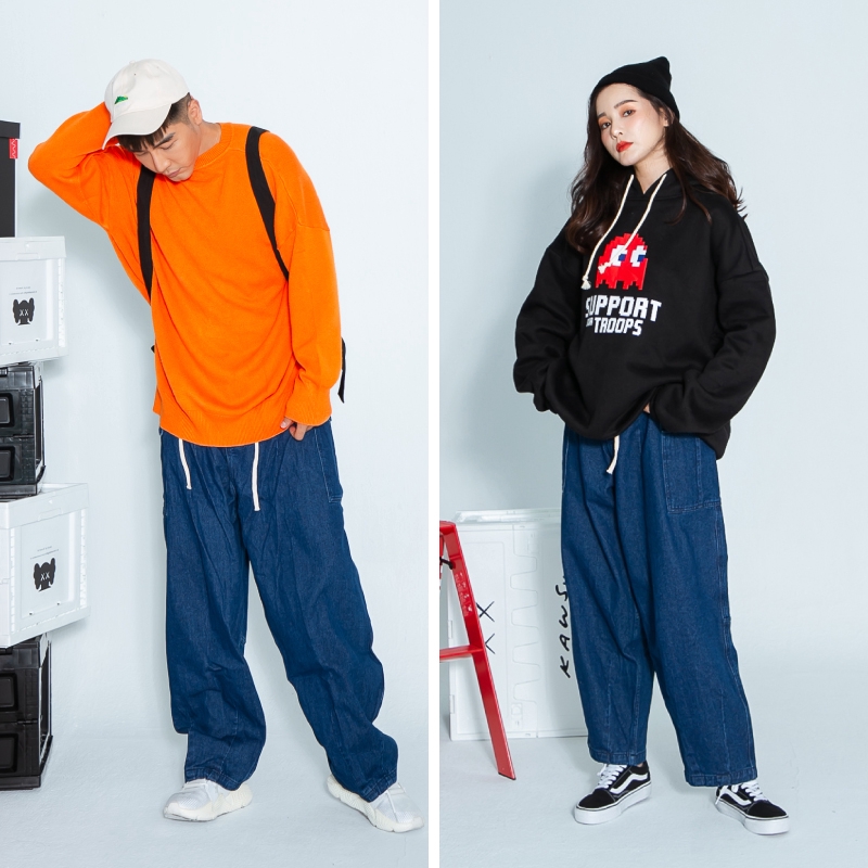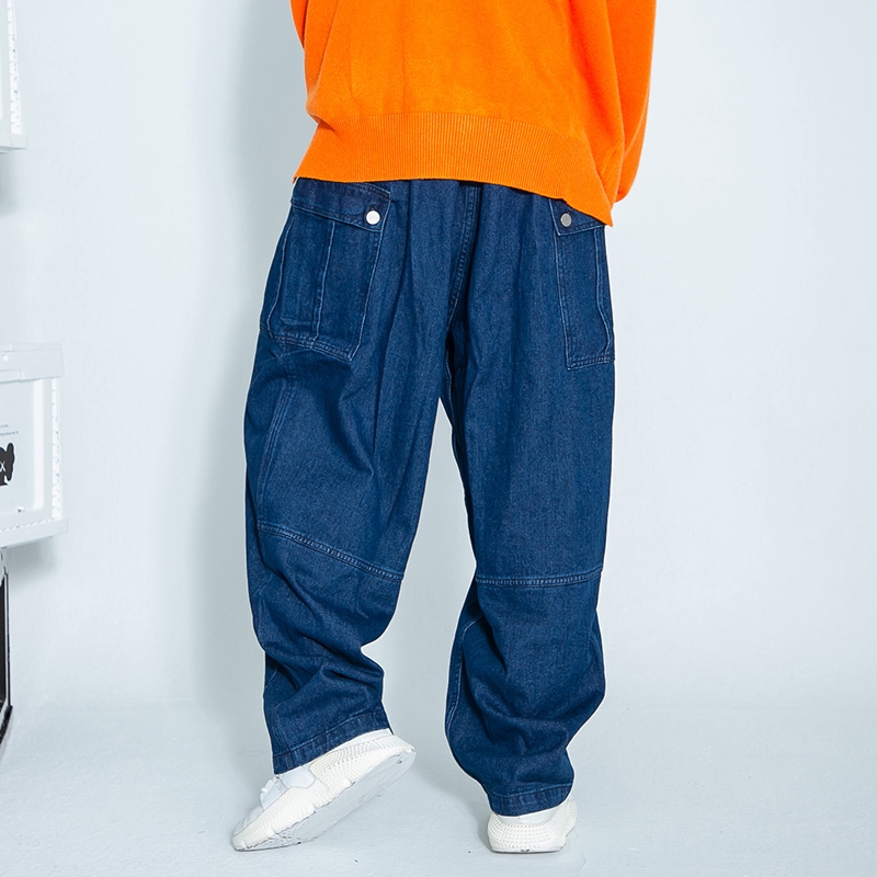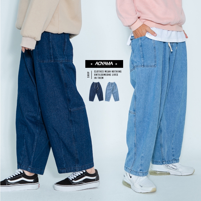 AOYAMA 日系復古軍事牛仔寬鬆繭型工裝牛仔褲【OB252】工作褲 潮流 寬褲 打折 工裝褲 丹寧褲 情侶 青山