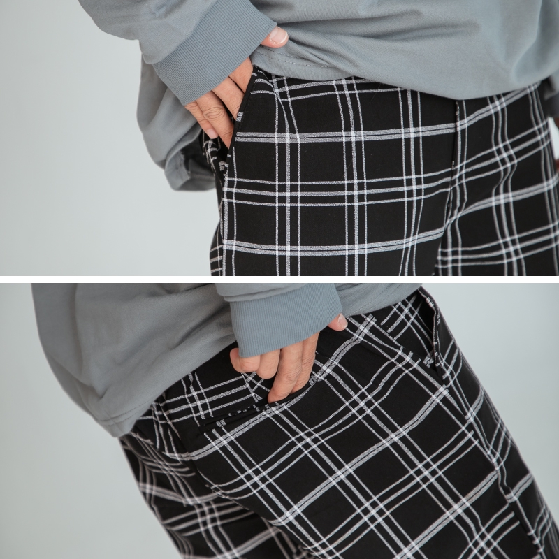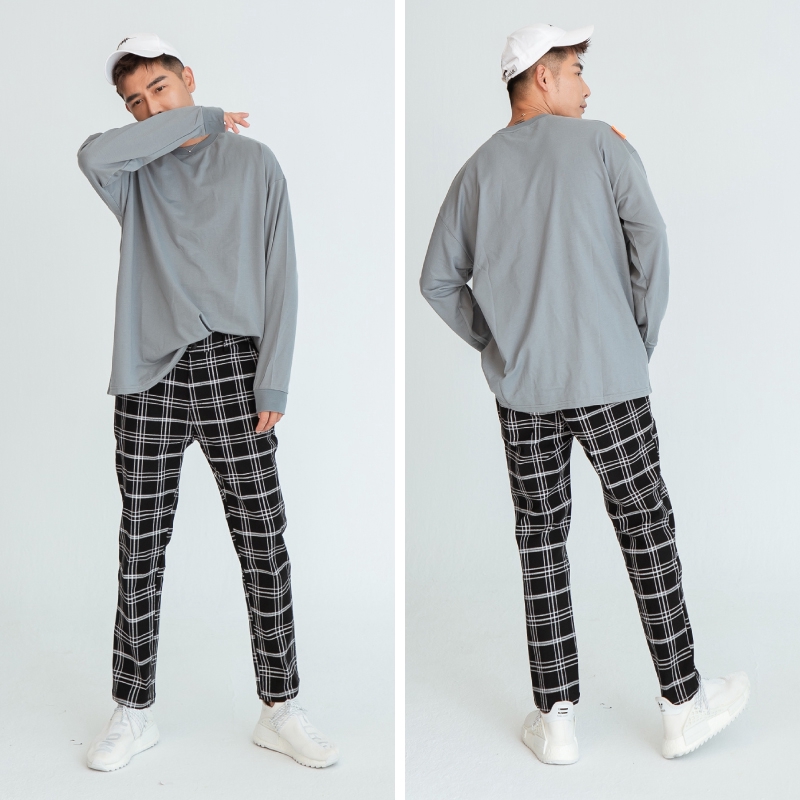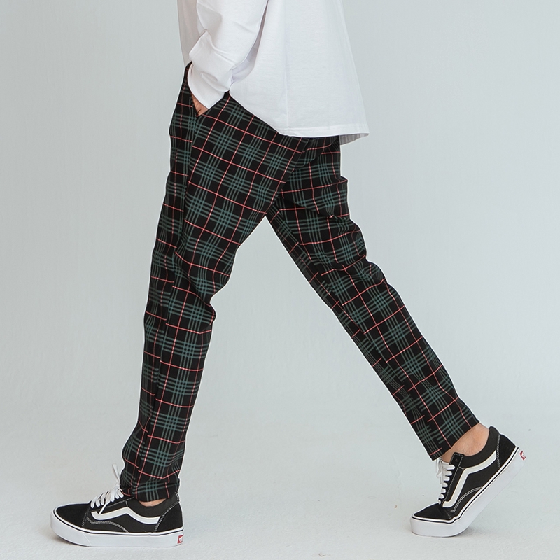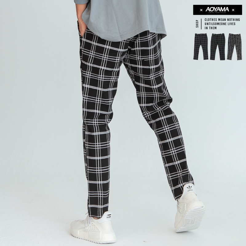 AOYAMA 韓國 硬挺彈力 雅痞格子褲【H69130】格紋褲 九分褲 長褲 帥 工裝褲 休閒長褲 青山