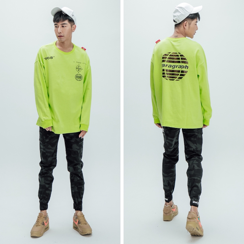 AOYAMAParagraph 反光豹紋地球 IGO綠落肩T【B6857】oversize大學T 情侶 P08 IGO綠