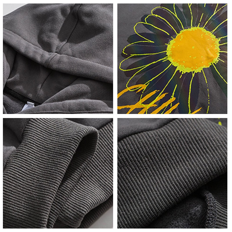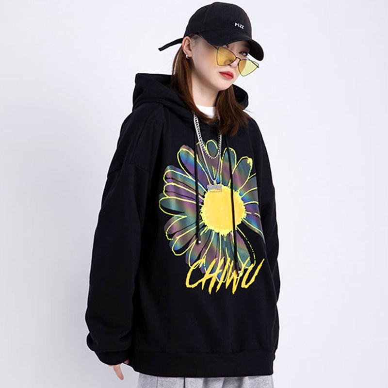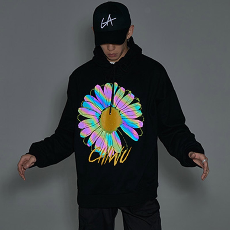 AOYAMA 翻玩 七彩變色 反光雛菊 寬鬆落肩刷毛帽T【A6875】帽T 大學T 情侶 oversize 青山