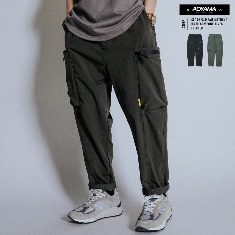 AOYAMA 日系寬版防水拉鍊大口袋工作褲【SW014】休閒褲 舒適 工作褲 青山 五分褲 工裝褲 山系