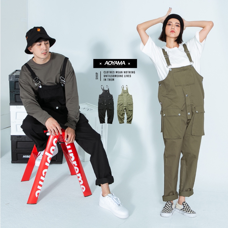 AOYAMA 日系阿美咔嘰連身工裝吊帶褲【A178】情侶 寬褲 休閒長褲 工作褲 舒適 長褲 青山 工裝
