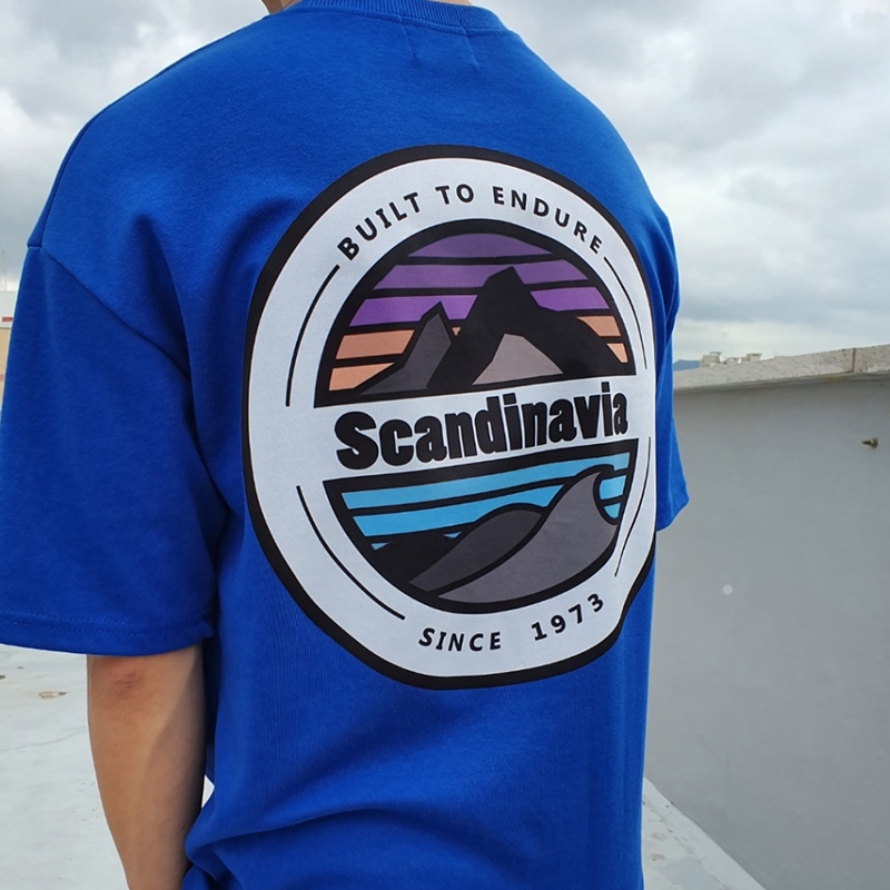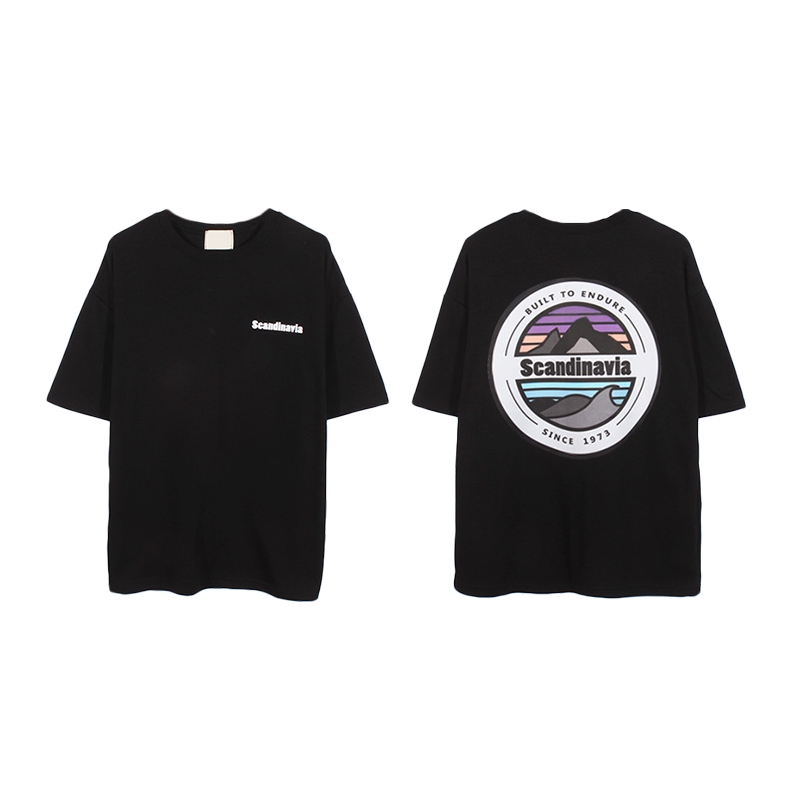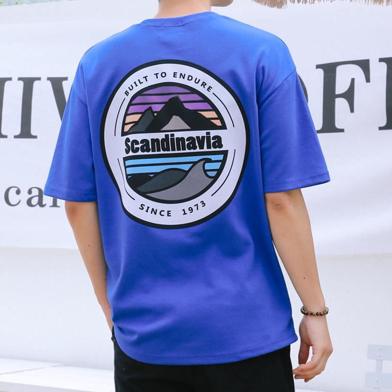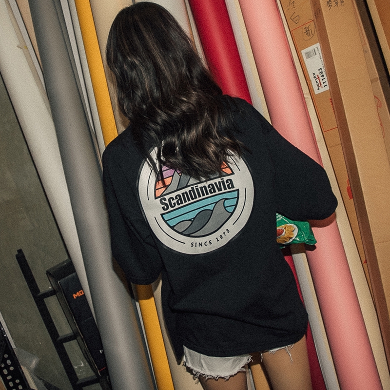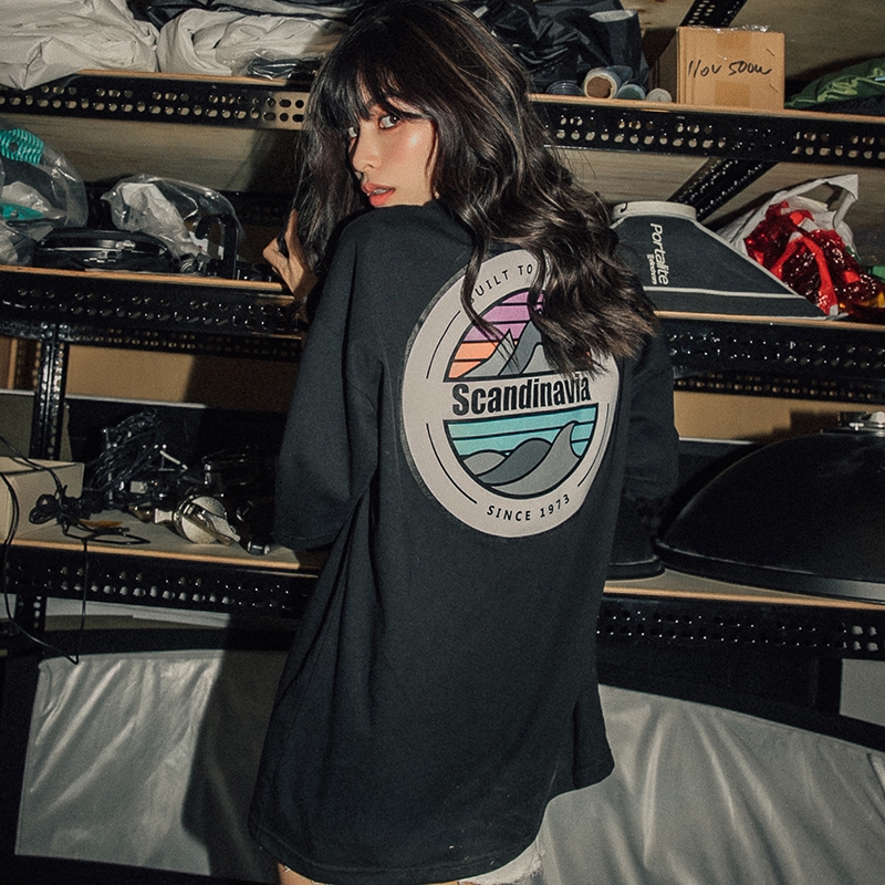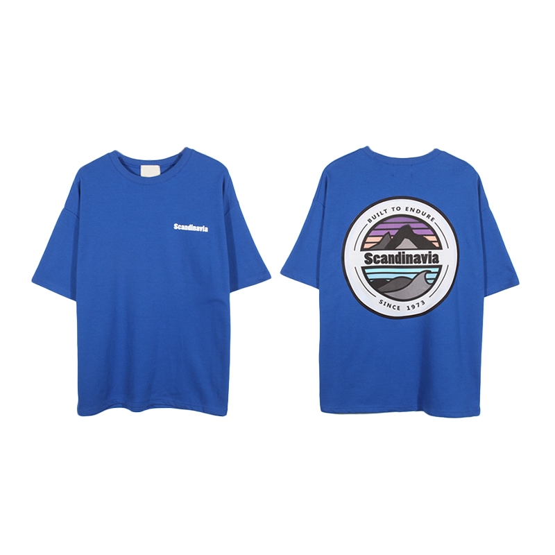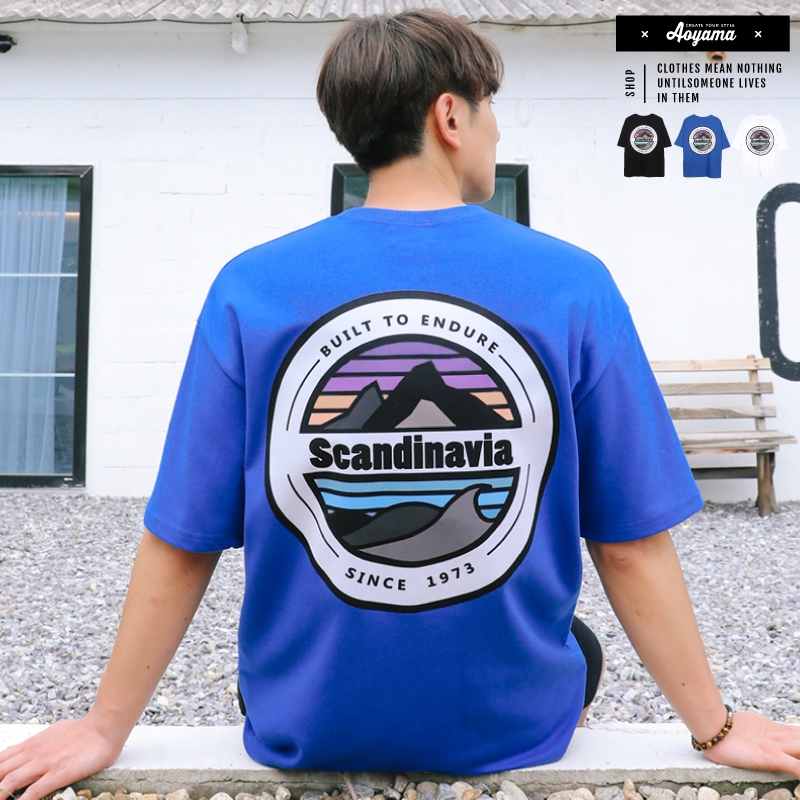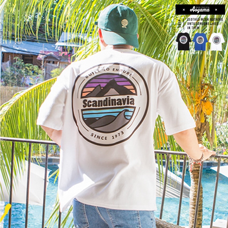 AOYAMA 韓國 Scandinavia 彩色 圓景 山脈 寬鬆 落肩 五分袖短T【A8810】oversize 情侶