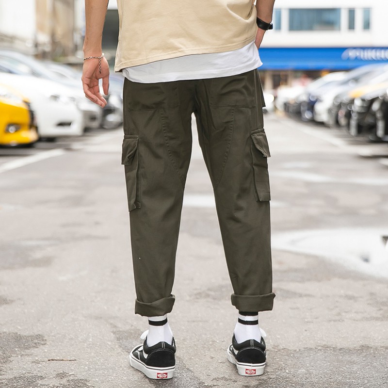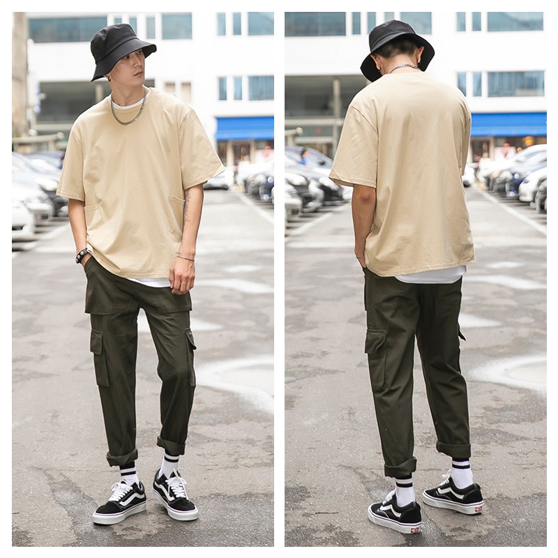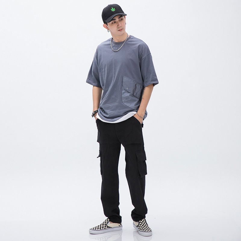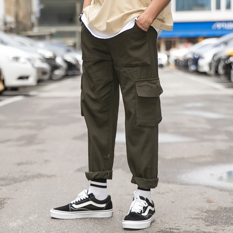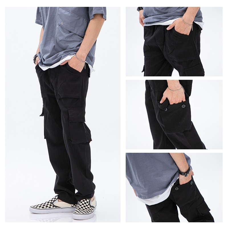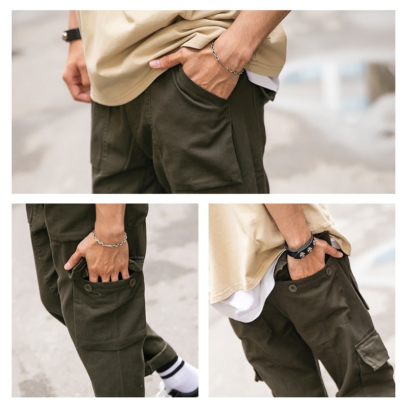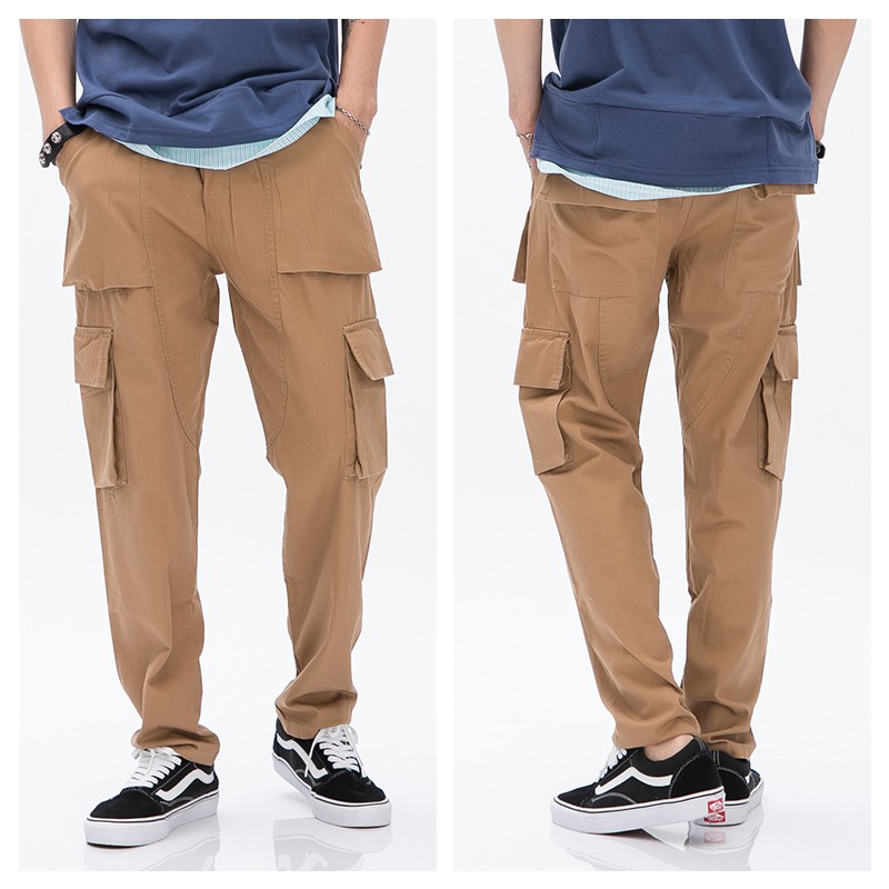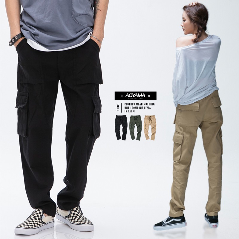 AOYAMA 立體側邊大口袋美式寬版工作褲【A88900】休閒長褲 工作褲 工裝 情侶 加大尺碼 六袋款 青山