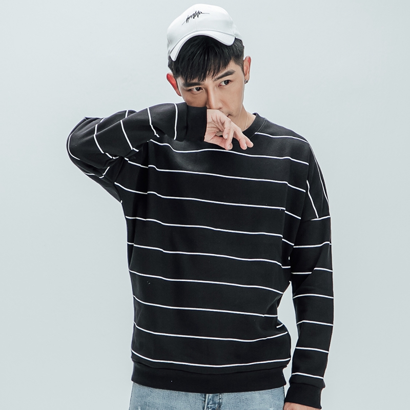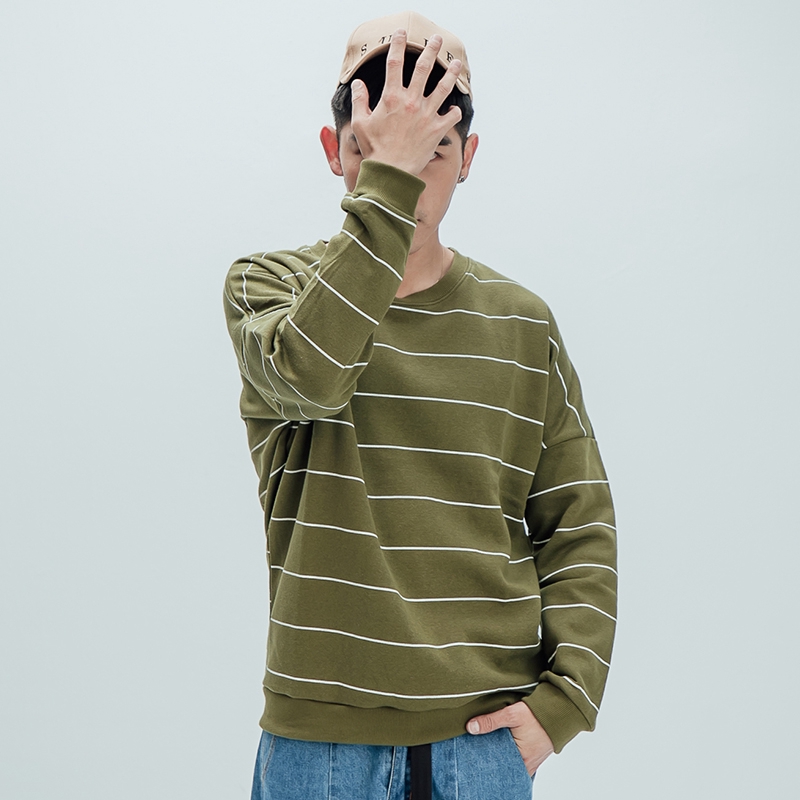 AOYAMA 韓國彩色寬條保暖刷毛落肩大學T【A6858】oversize 條文T 長T 情侶 大學T 帽T 青山