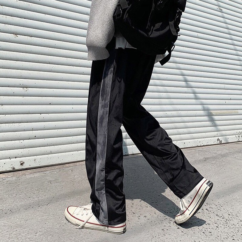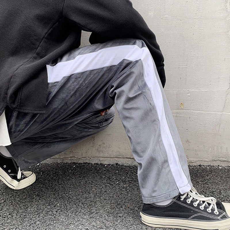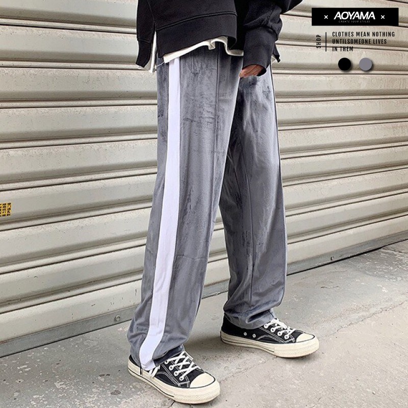 AOYAMA 單線邊條 舒適 蜜絲絨 潮流感 休閒長褲【CK60】長褲 單線褲 運動風 街頭 落地褲 休閒長褲 青山