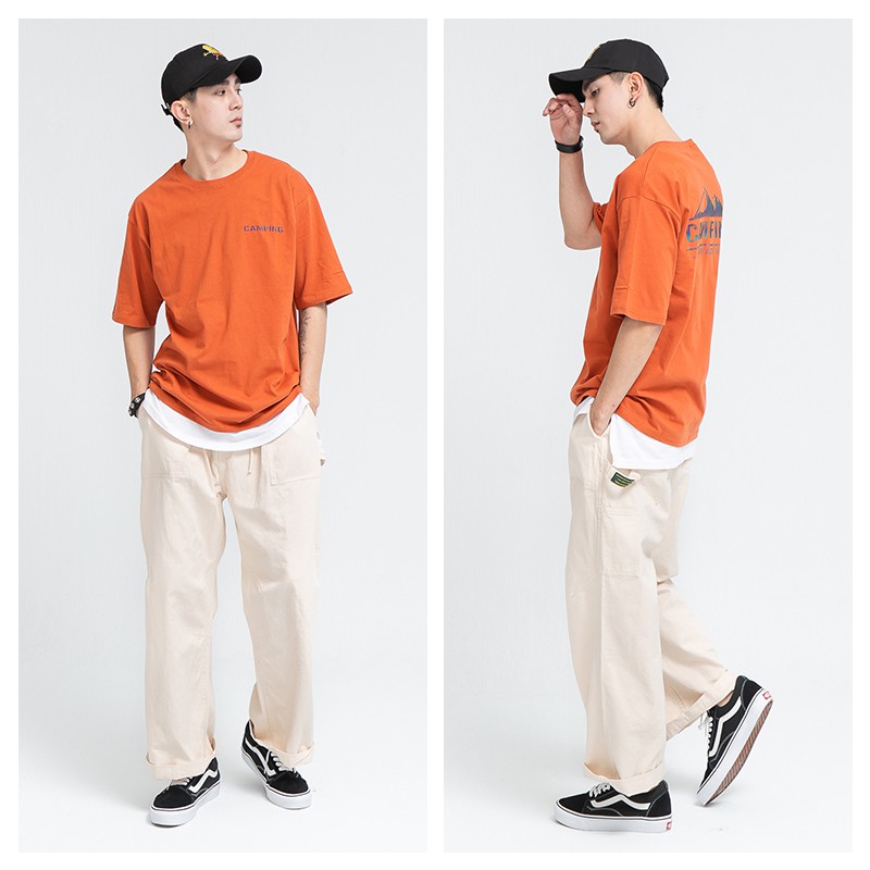 AOYAMA 日系 復古寬版 重磅畫家工作褲【TOB255】長褲 多口袋 工裝 寬褲 拼接 青山