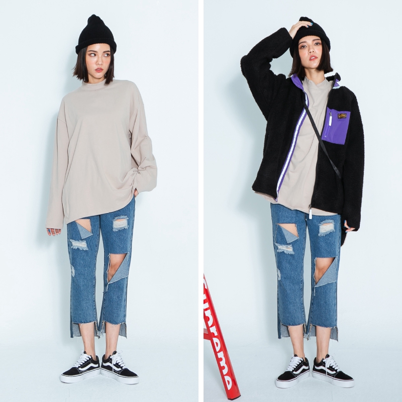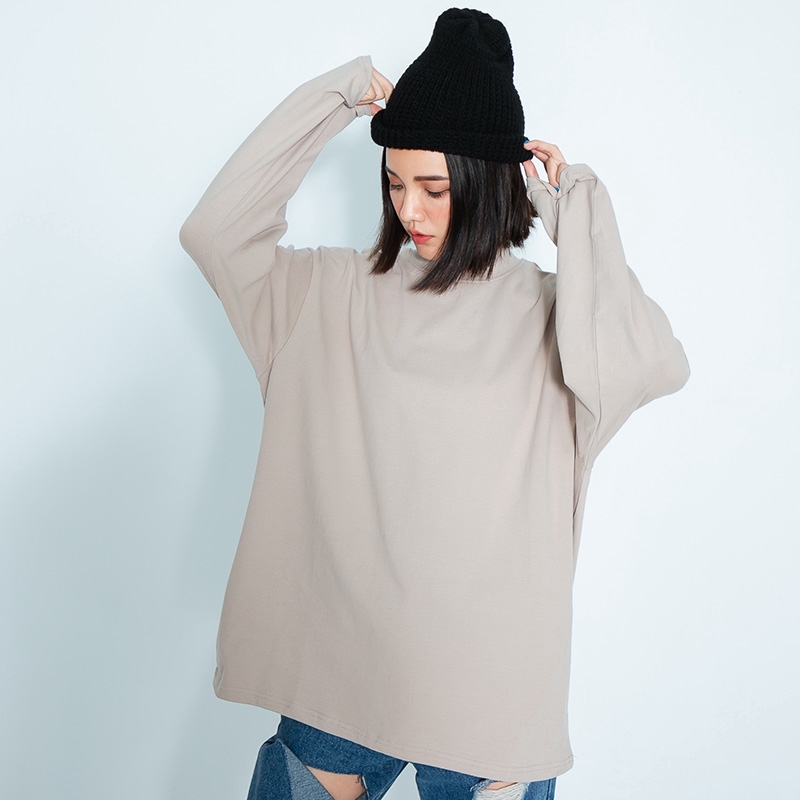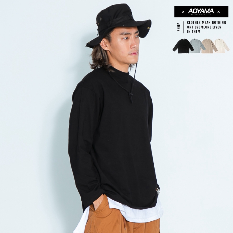 AOYAMA 韓國 小立領 親膚 彈力 素面落肩長T【KT233】素T 落肩 長T 落肩 情侶 層次搭配 內搭 青山