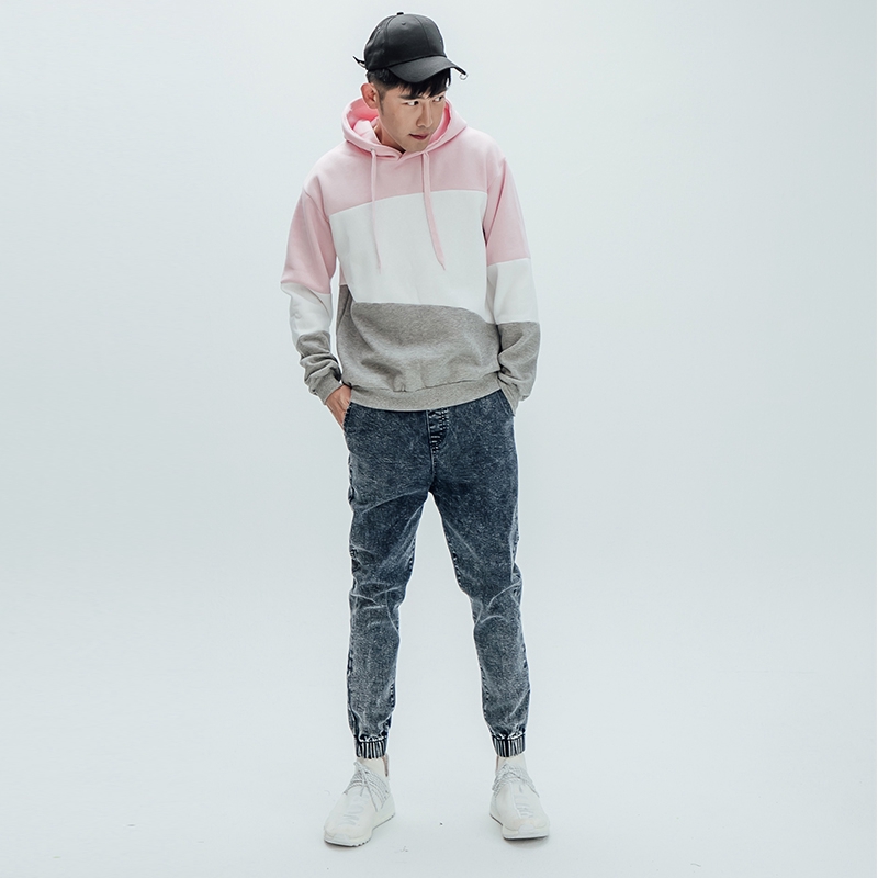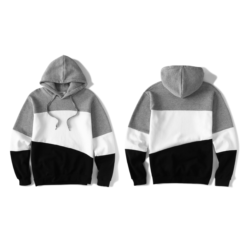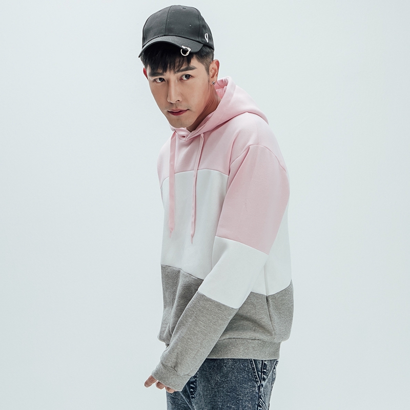 AOYAMA 層次感三色拼接刷毛帽T【NG2417】寬鬆 落肩 拼接 長T 情侶 大學T 青山
