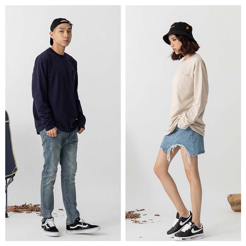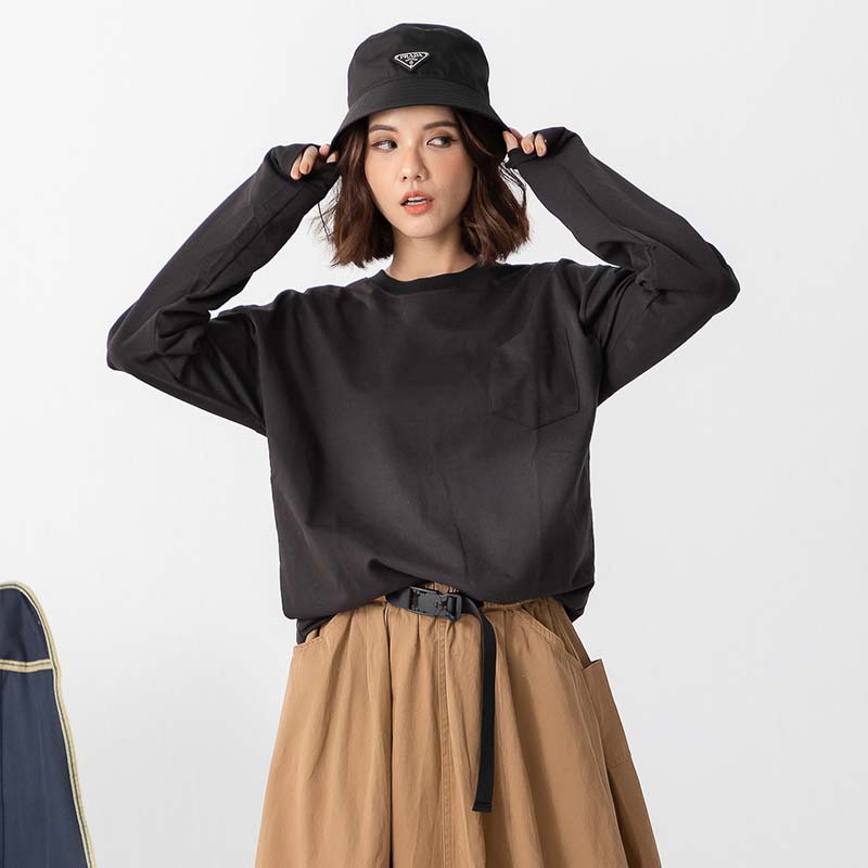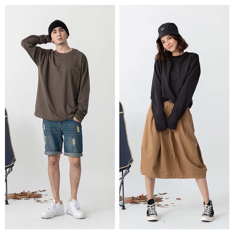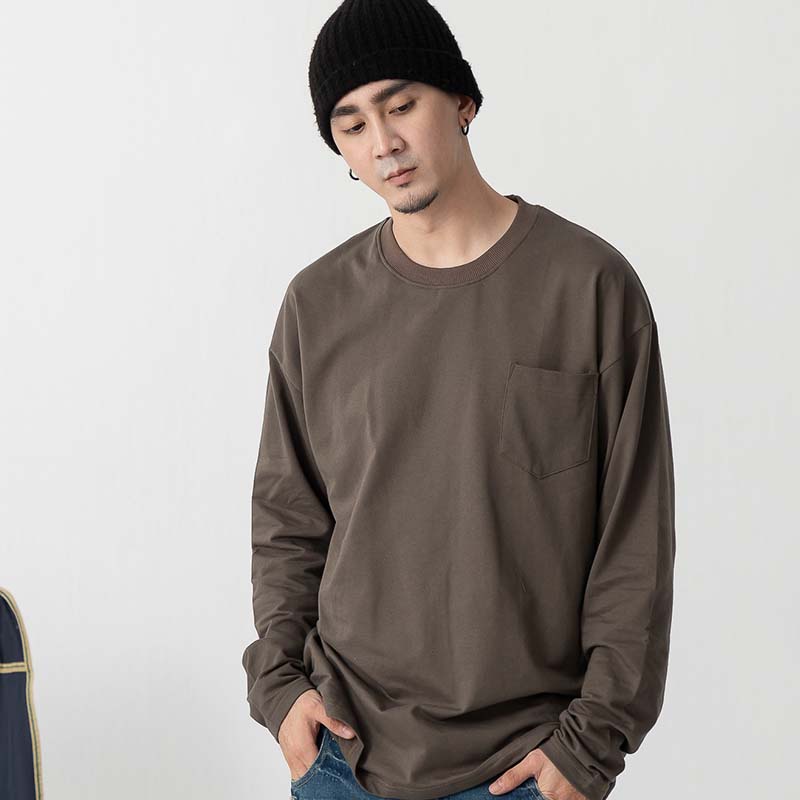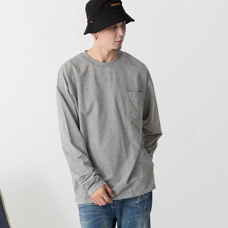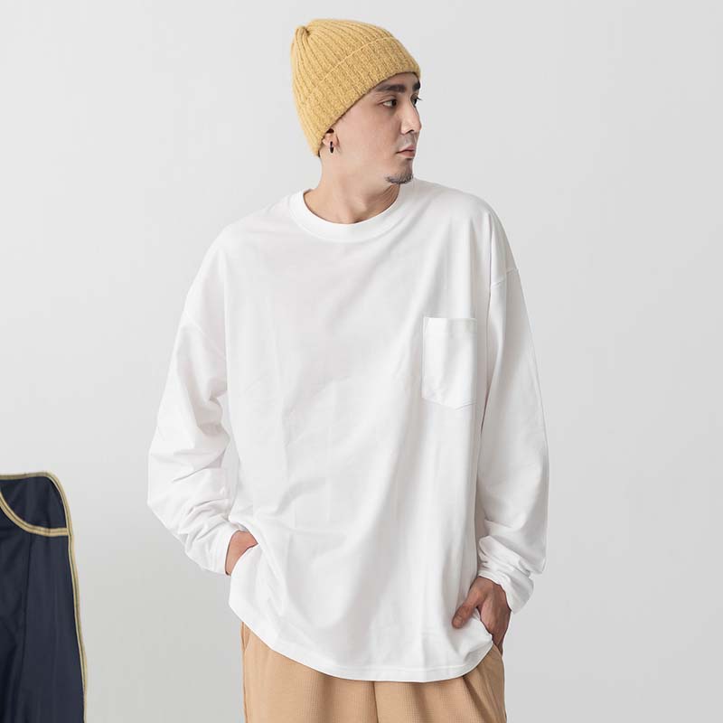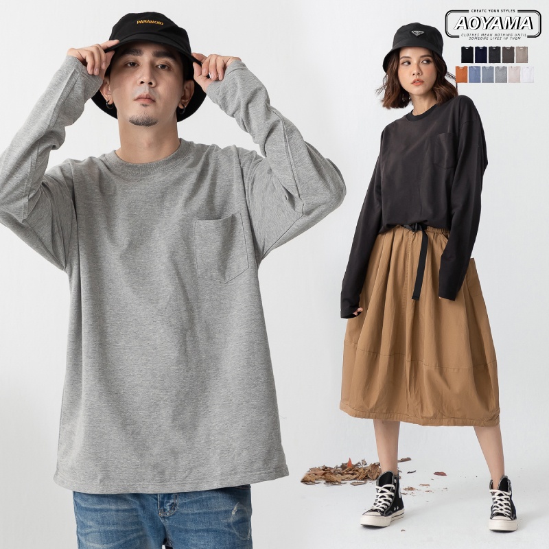 AOYAMA 寬鬆落肩美式硬派口袋長T【HK0100】長T 口袋T 落肩T 大學T 寬鬆長袖 青山 素面 工裝素T