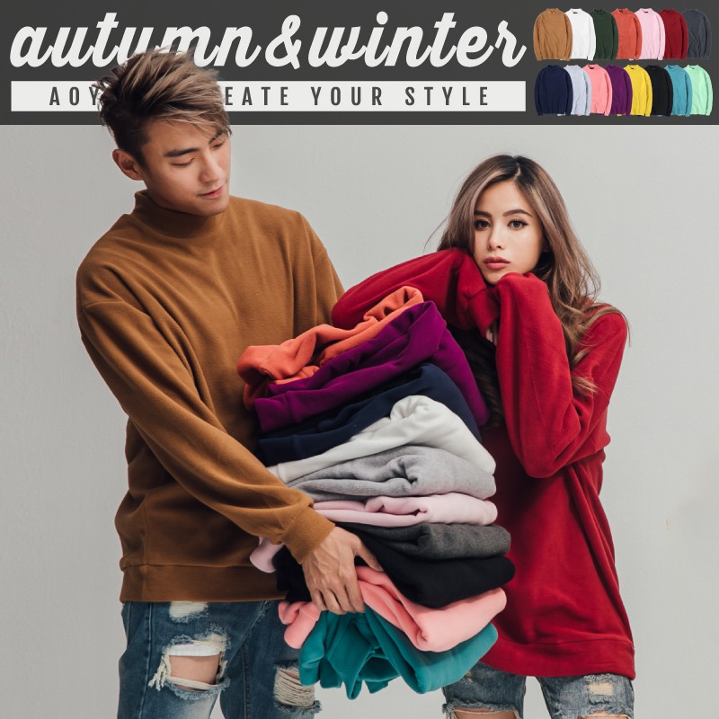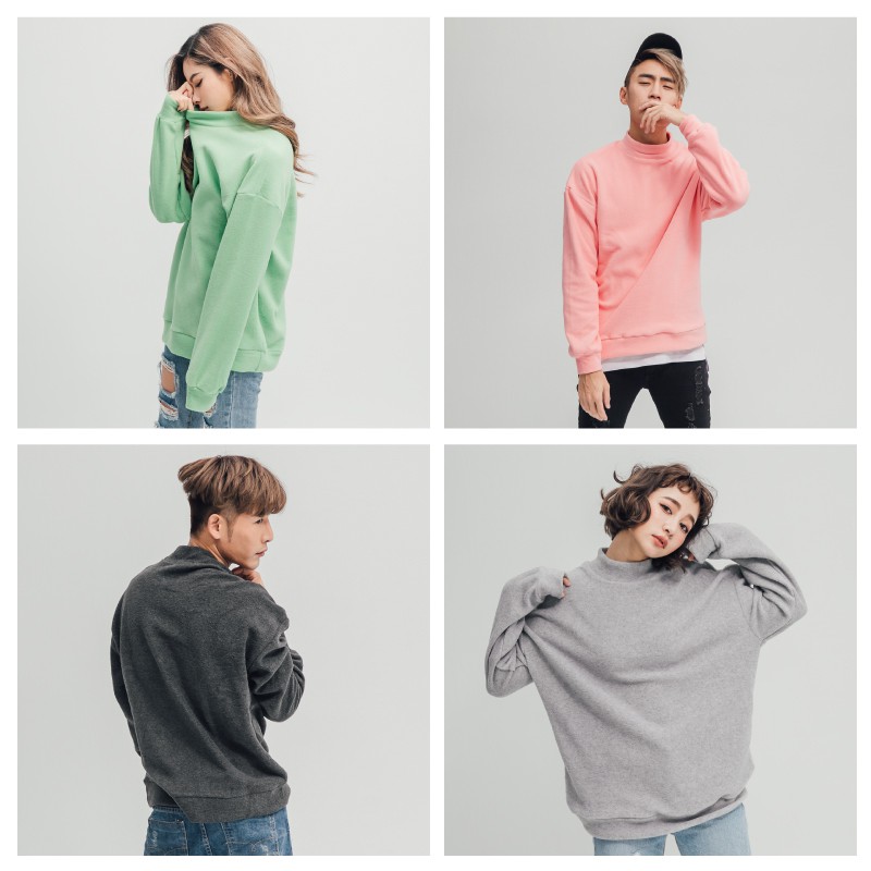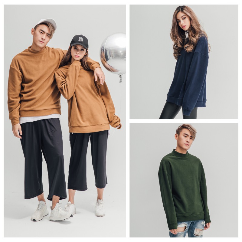 親膚保暖寬鬆落肩立領大學T【A20175】情侶T 多色 落肩 oversize 青山AOYAMA