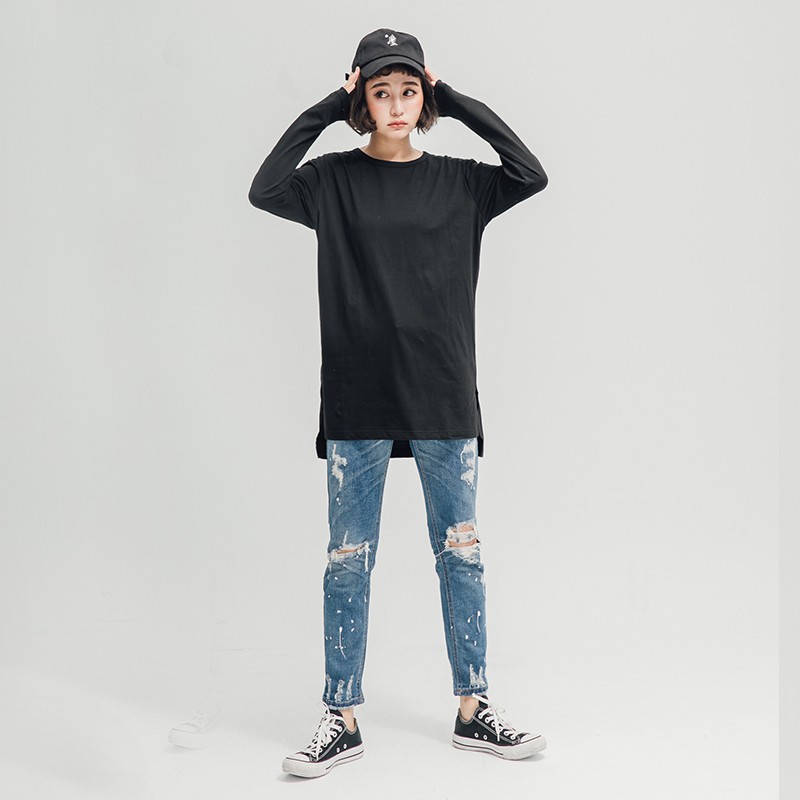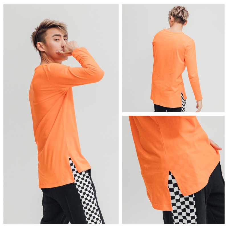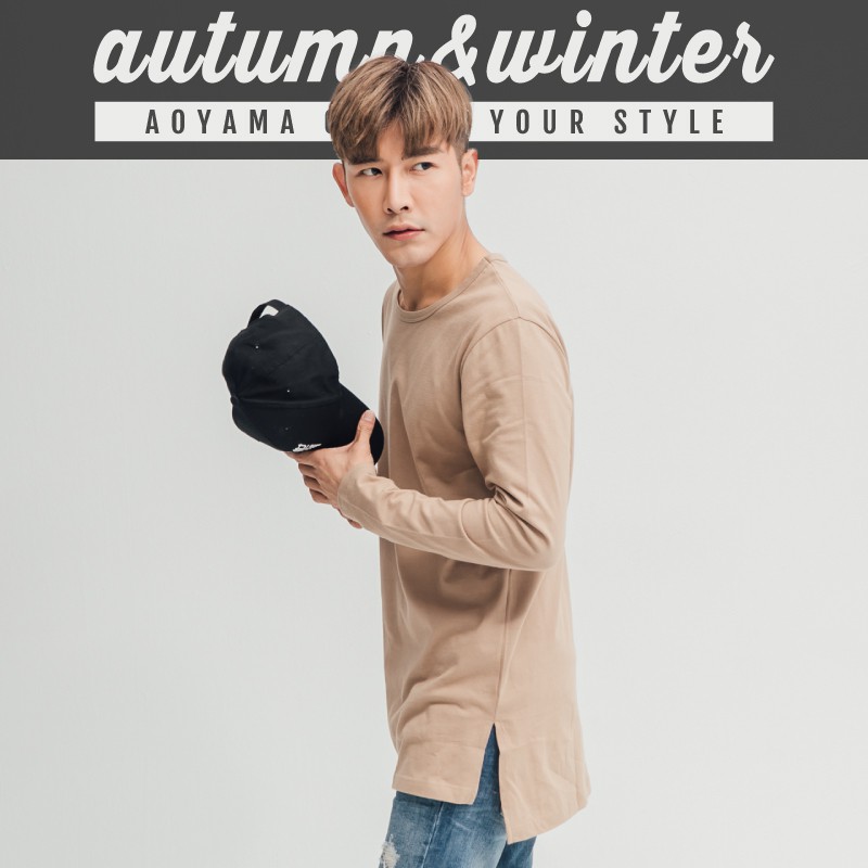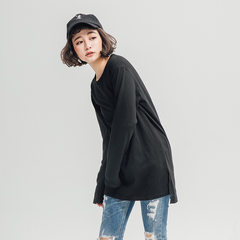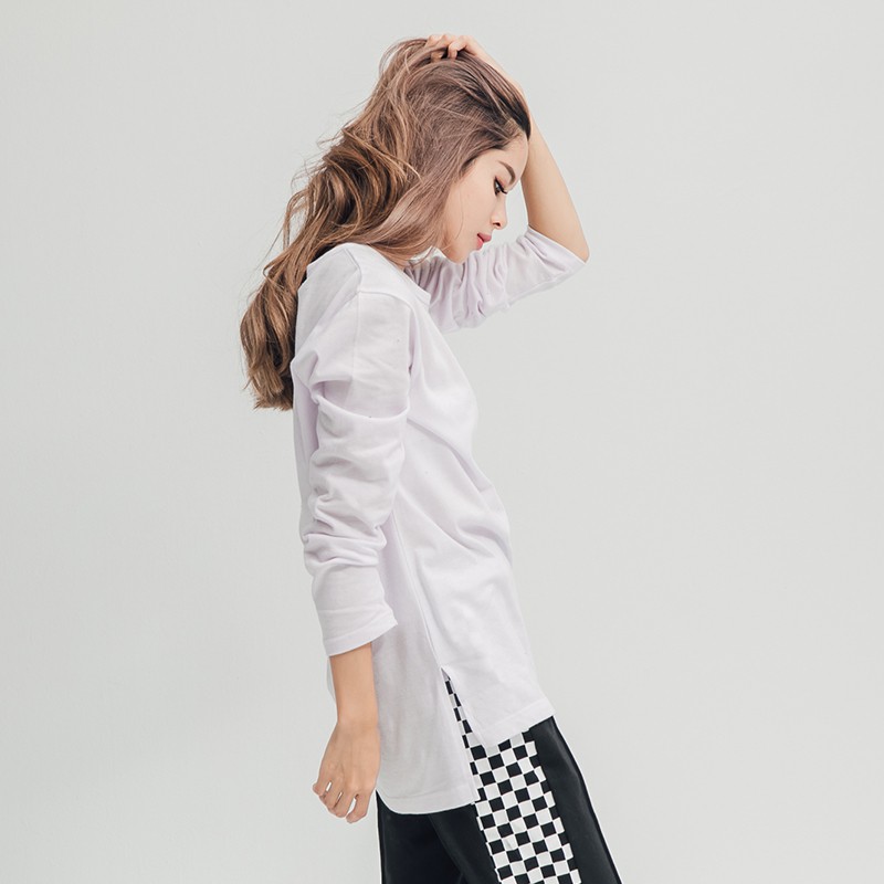 前短後長素面開衩長T【K8049】情侶T 開衩 長版 青山AOYAMA