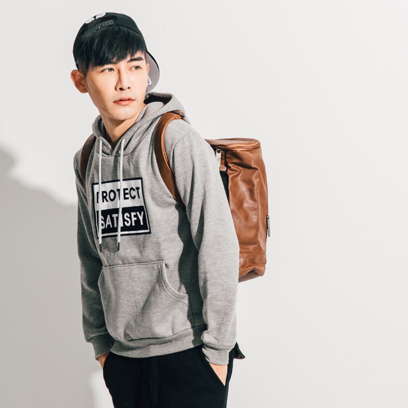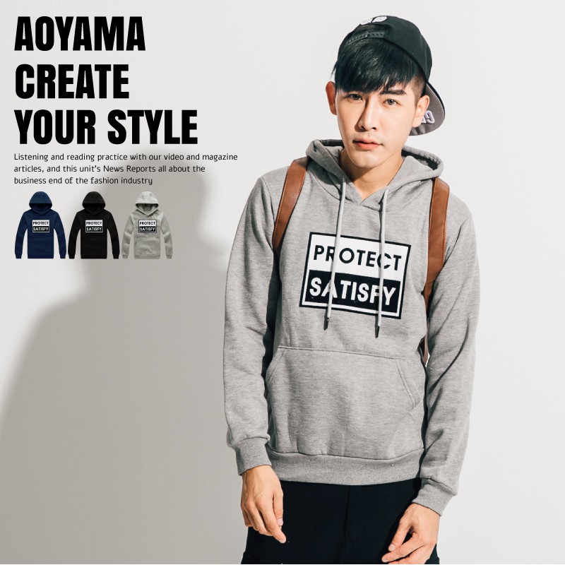 舒適簡約方塊字母印花重磅刷毛帽TEE【PC7605】 帽T AOYAMA