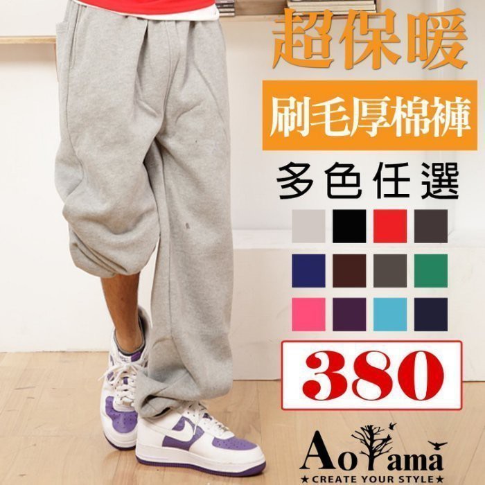 AOYAMA 580磅超厚重磅不起毛球刷毛厚棉褲【WA29082】縮口棉褲 青山