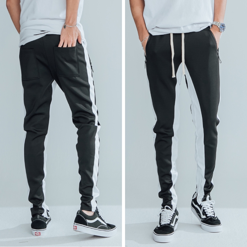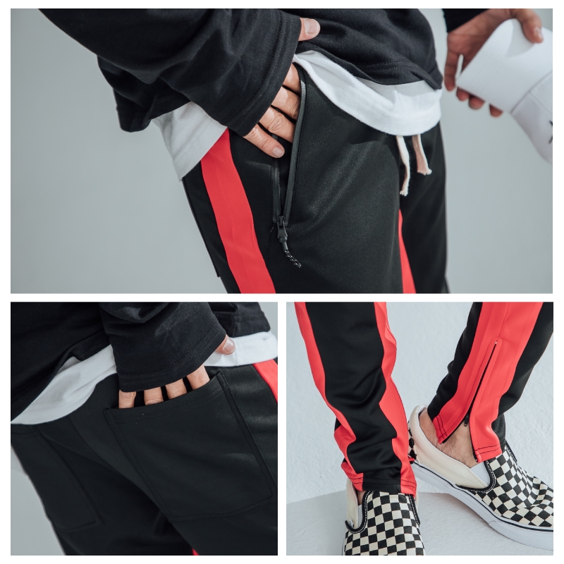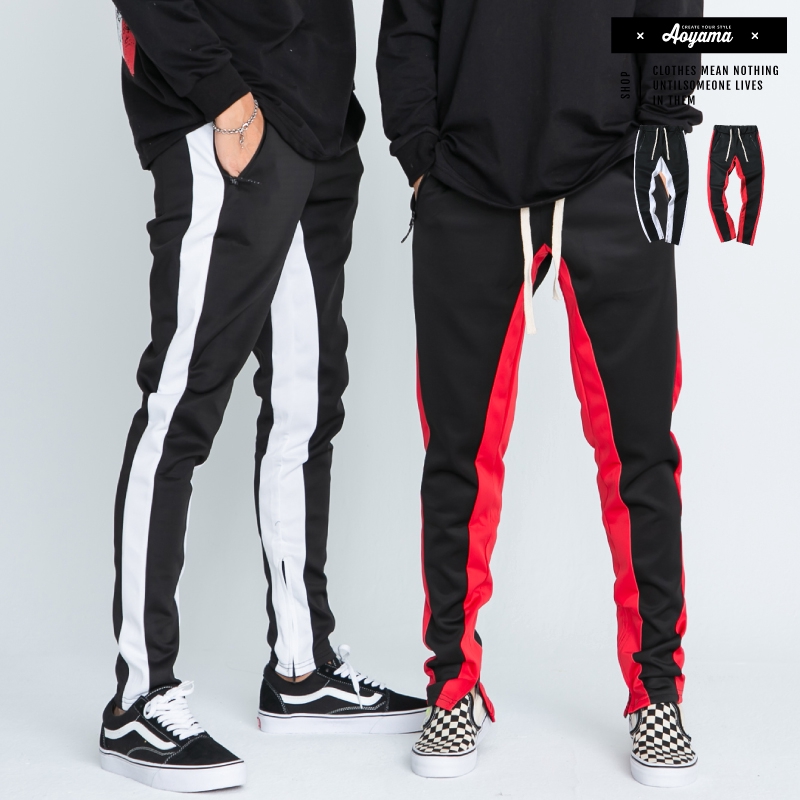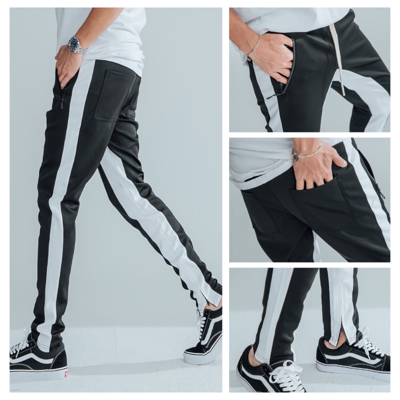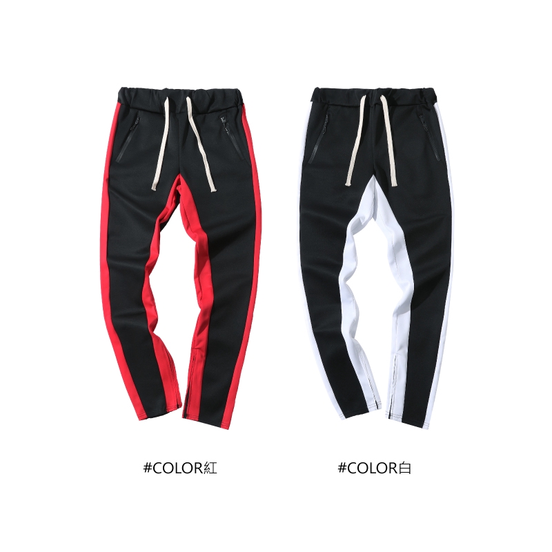 AOYAMA 歐美街頭穿搭 雙槓邊條運動風休閒褲【A201911】口袋拉鍊 運動褲 長褲 單線褲 小腳褲 青山