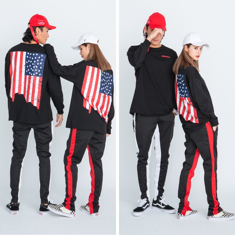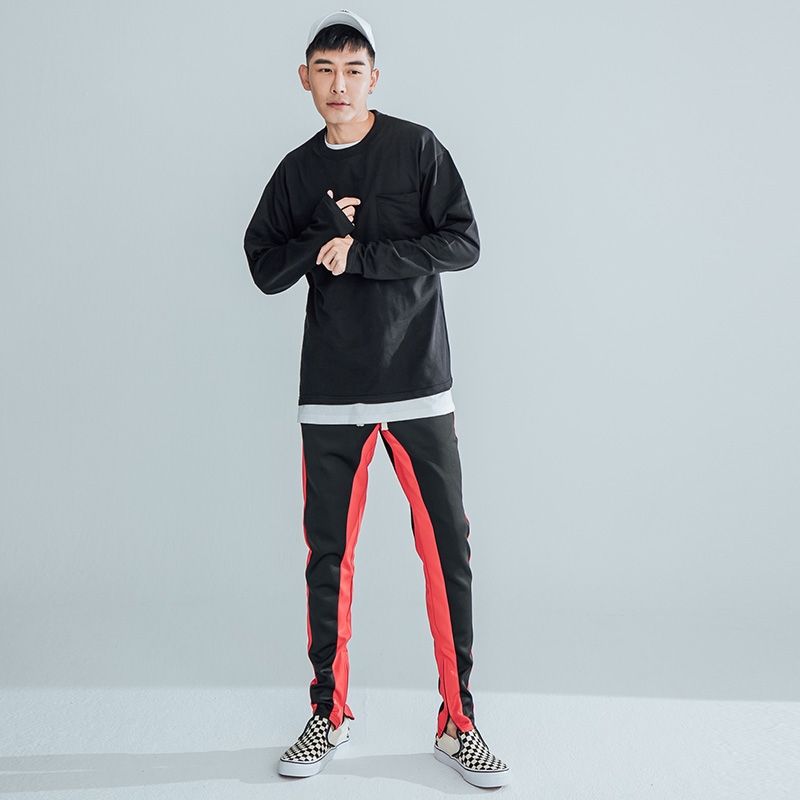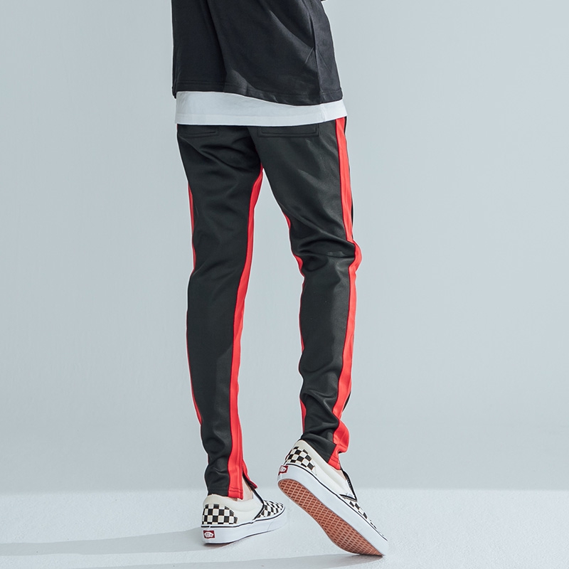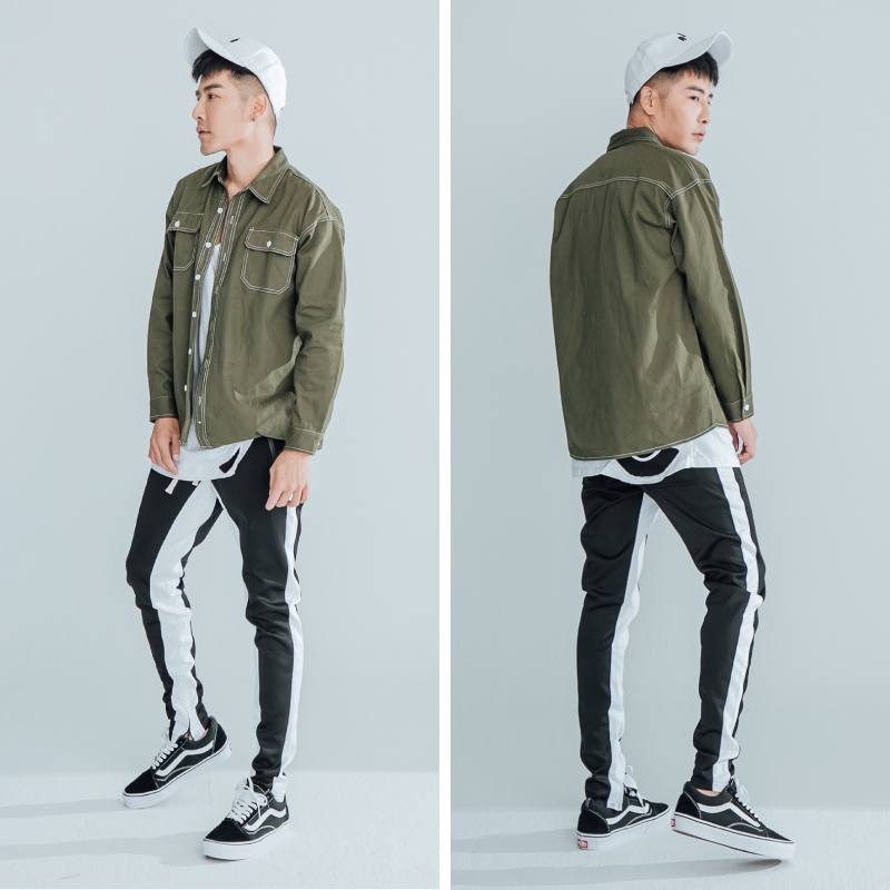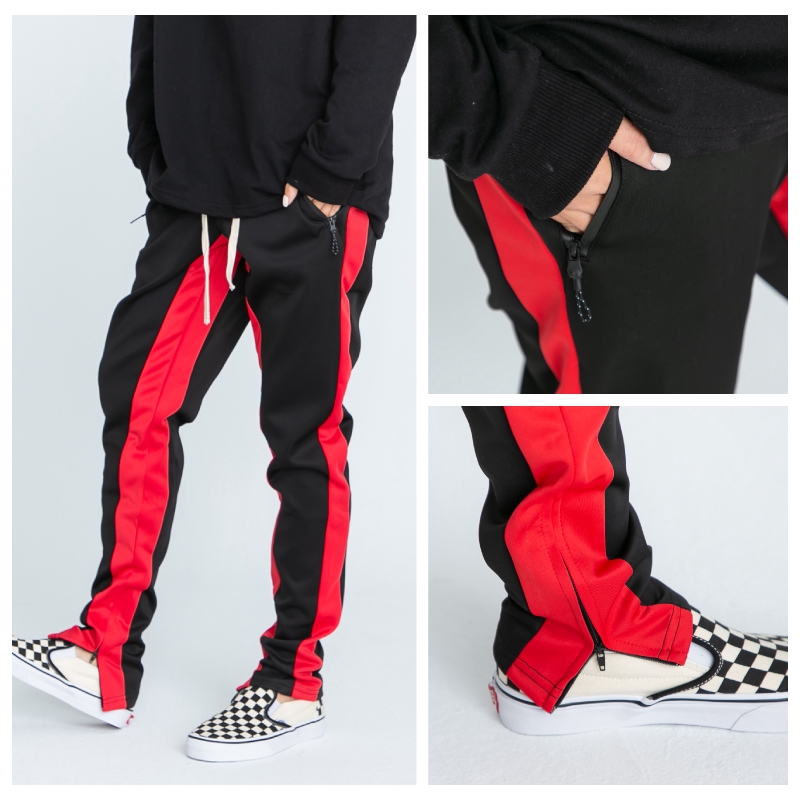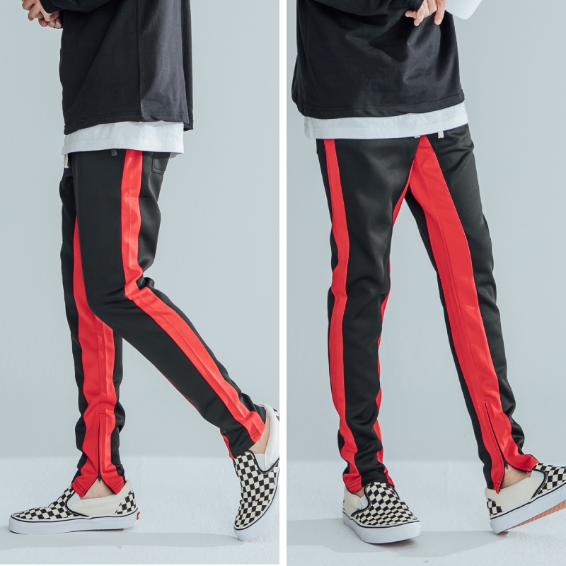 AOYAMA 歐美街頭穿搭 雙槓邊條運動風休閒褲【A201911】口袋拉鍊 運動褲 長褲 單線褲 小腳褲 青山