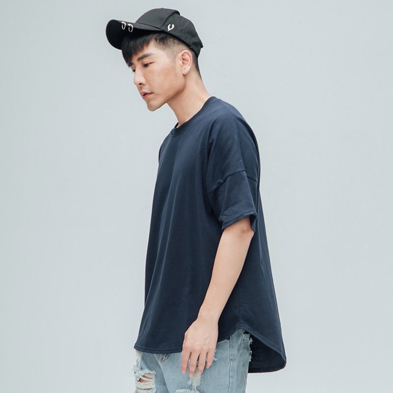 AOYAMA 夏日最強 高磅 落肩 oversize 五分袖 長版 圓弧下擺美式短T 【A1806】五分袖 落肩 情侶