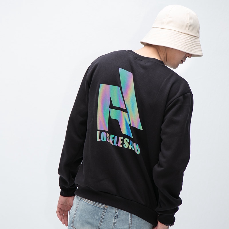 AOYAMA LA彩色變色龍反光刷毛大學T【J0932】帽T 大學T 情侶 oversize 落肩T 韓國 翻玩 青山