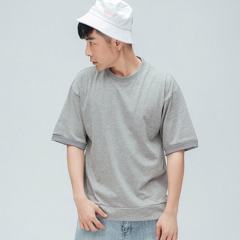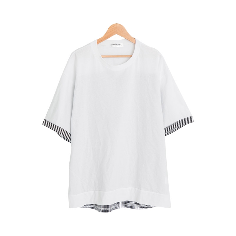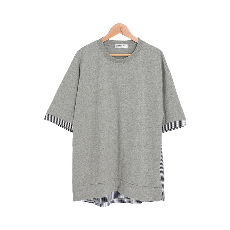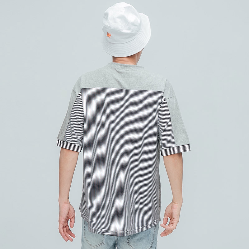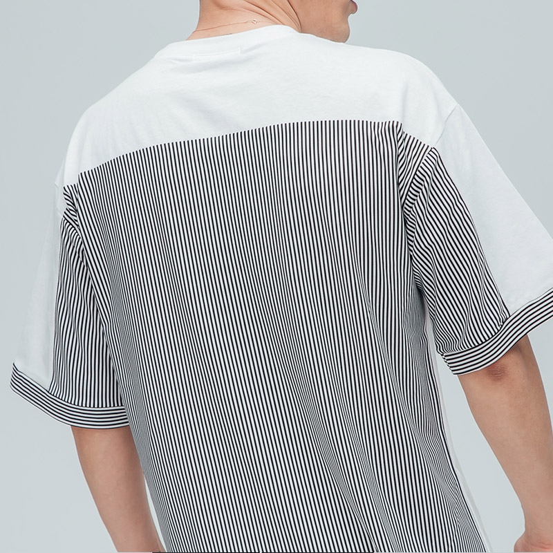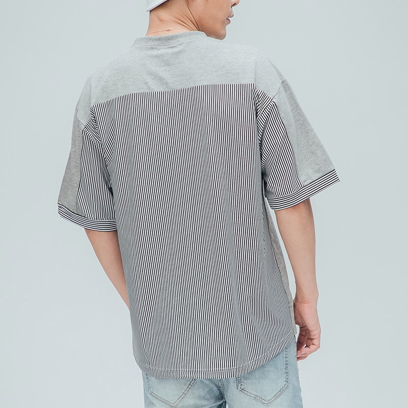 AOYAMA 線條前後異色拼接造型寬鬆短T【H702】五分袖 條紋T 情侶 街頭 青山 韓國 拼接 oversize