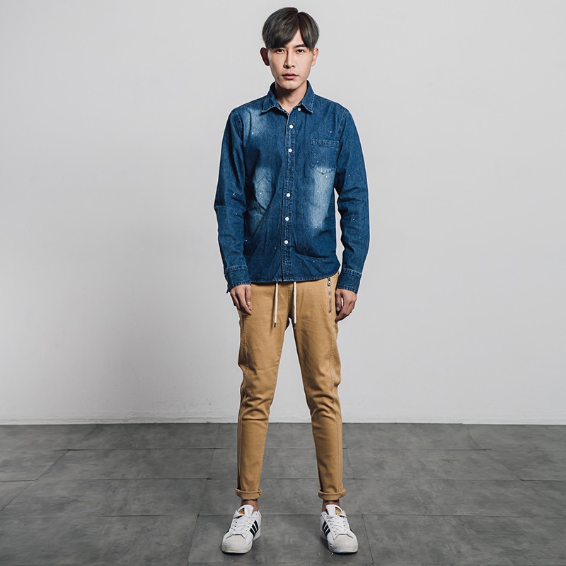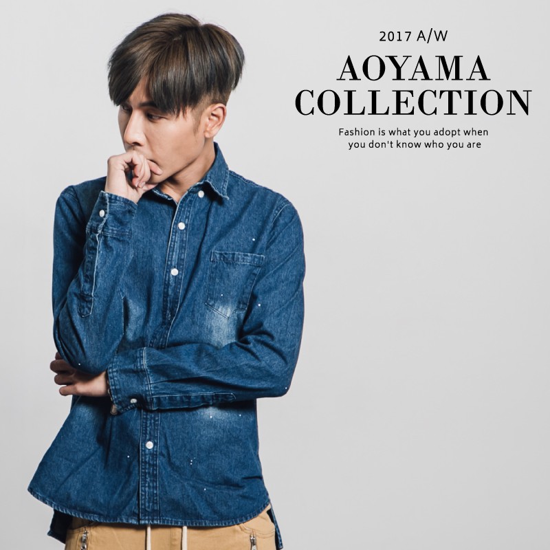 AOYAMA 彷舊潑漆側邊開衩牛仔襯衫【P98346】青山