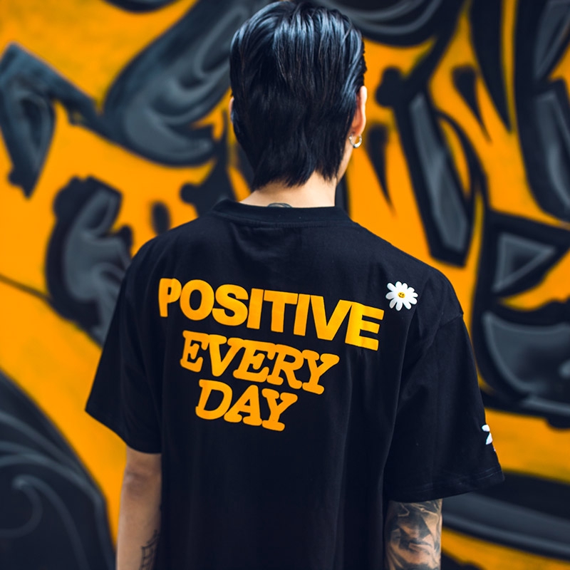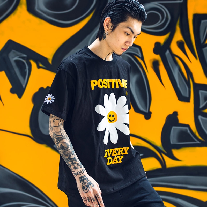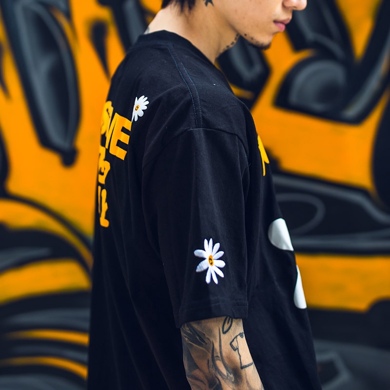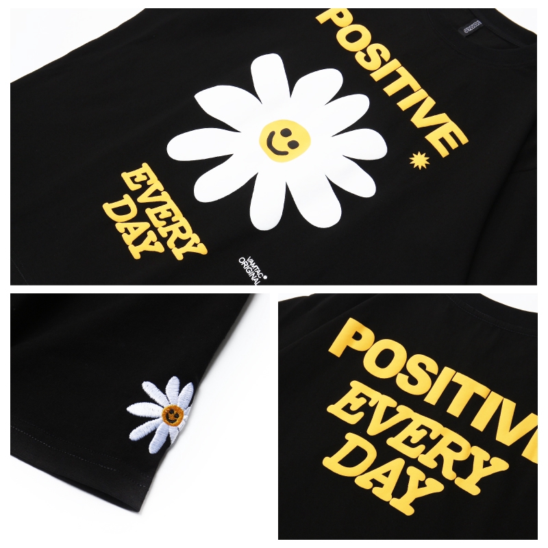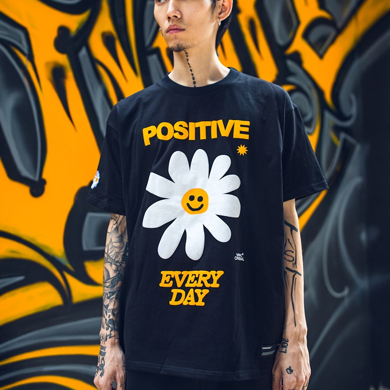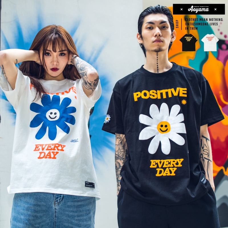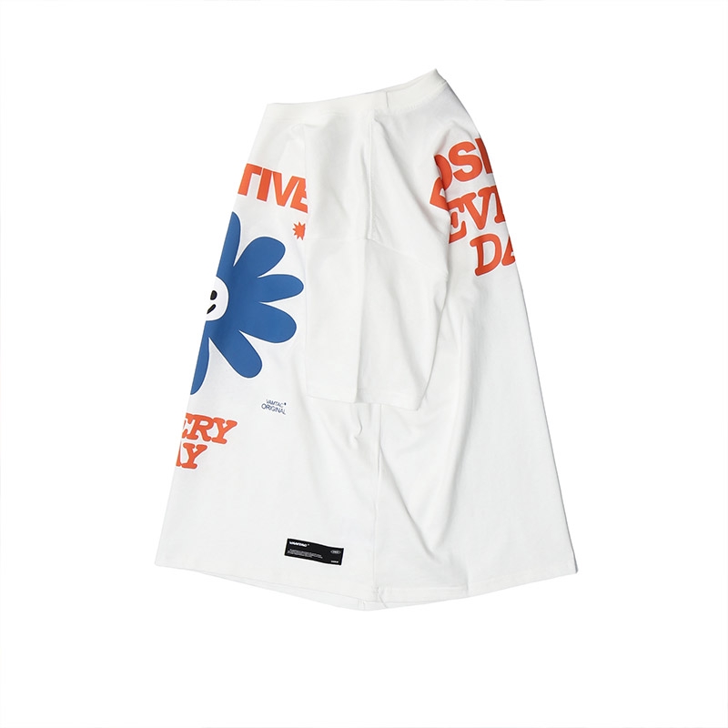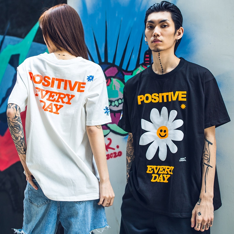 AOYAMA POSITIVE 塗鴉笑臉雛菊 街頭短T【VT387】翻玩 五分袖 嘻哈 落肩 情侶 青山