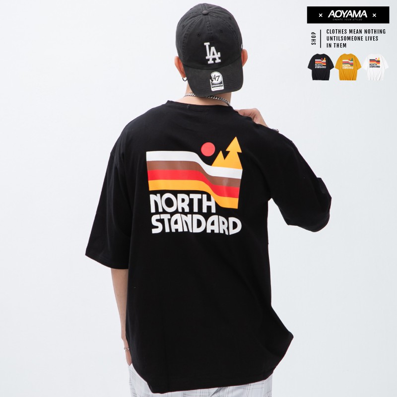 AOYAMA NORTH SRANDARD 太陽 松樹 山系落肩短T【PC8278】oversize 情侶 街頭 青山