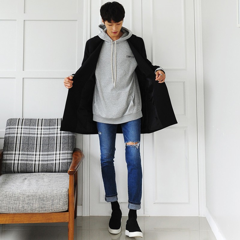 COMPLEX韓系重磅刷毛落肩帽T【AC5203】寬鬆長袖 情侶 AOYAMA