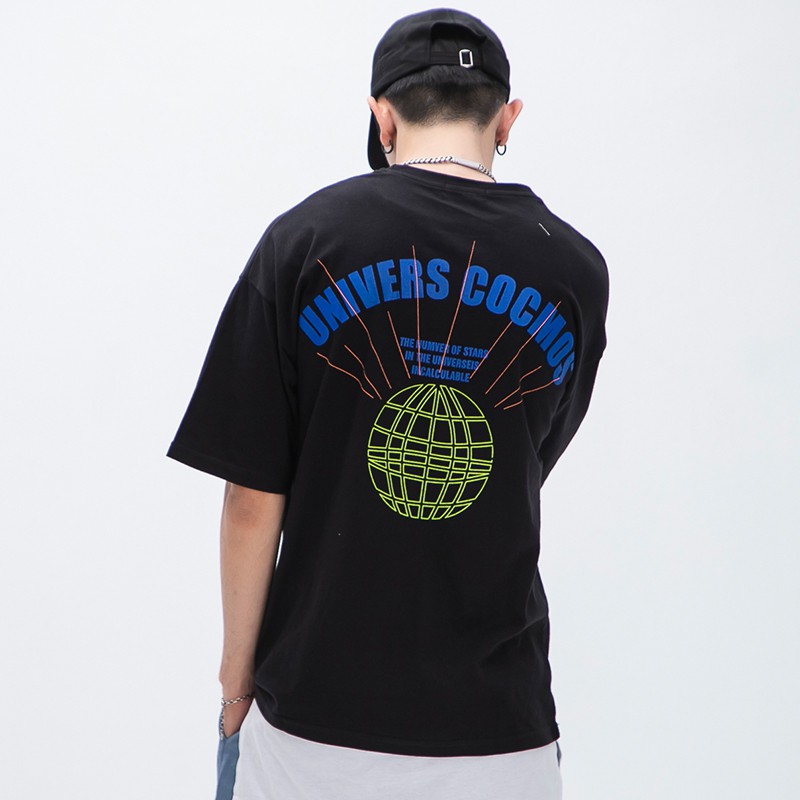 AOYAMA 韓國製 UNIVERS COCMOS 地球 五分袖落肩短T【A8905】五分袖 男女皆可 帥 寬鬆短袖