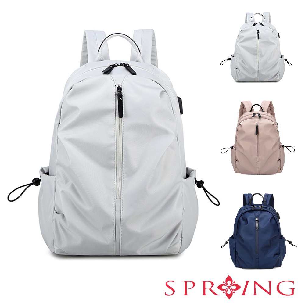 SPRING-尼龍布筆電商務後背包 輕量大容量防潑水耐磨透氣 14吋筆電防震後背包 情侶後背包 A4尼龍後背包-多色