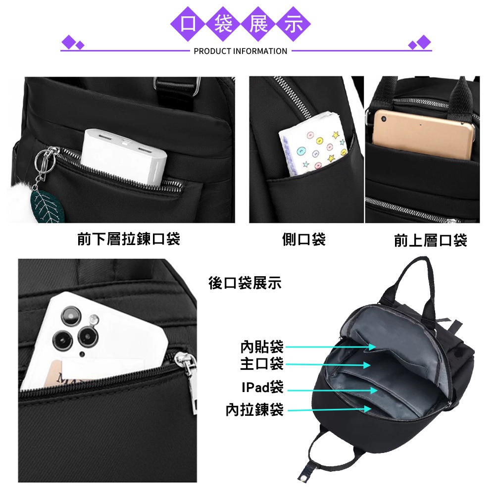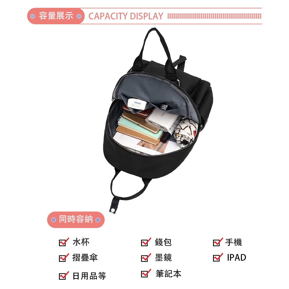 SPRING-尼龍後背包輕量多隔層大容量手提包後背包-多色