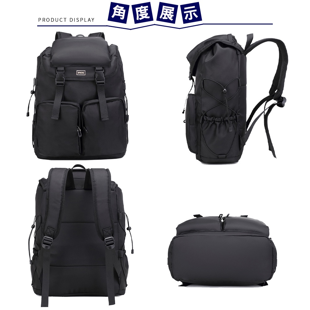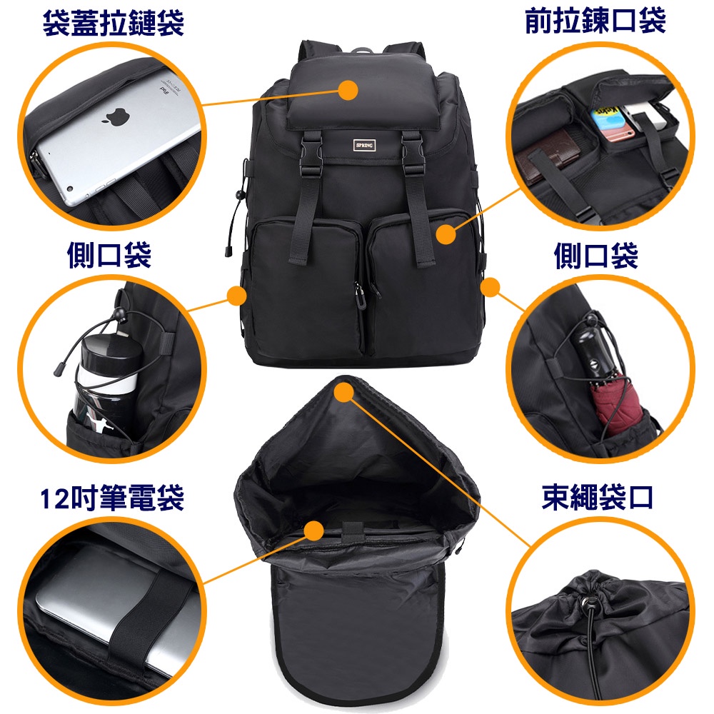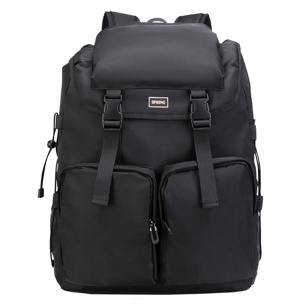 SPRING-尼龍後背包中性百搭插扣後背包學生書包大後背包
